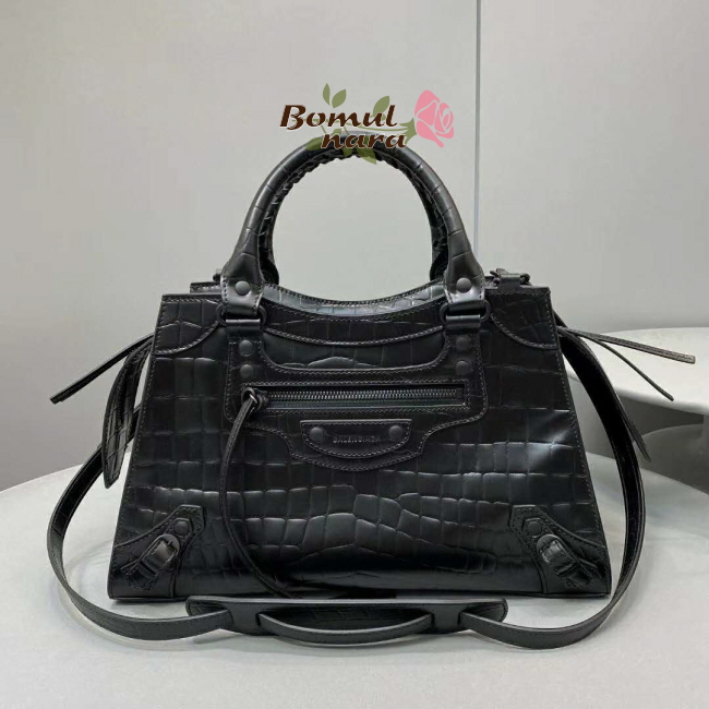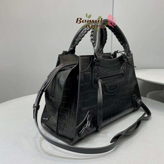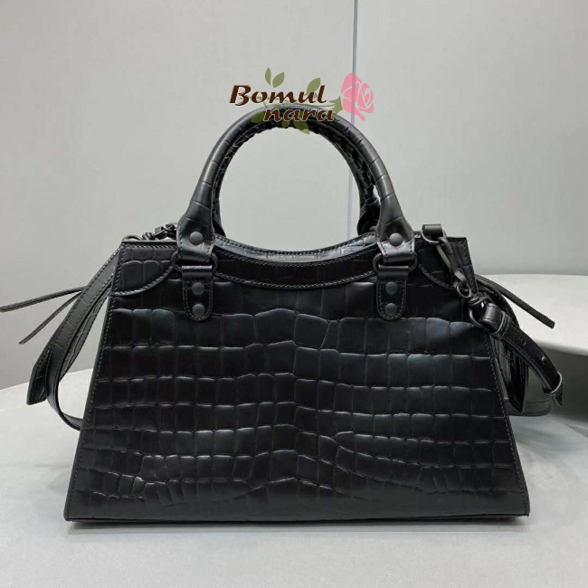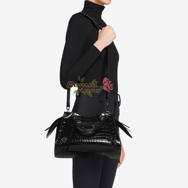 [스페셜오더]BALENCIAGA-63852115 발렌시아가 블랙 NEO CLASSIC 크로커다일 엠보싱 미듐 탑 핸들 시티백