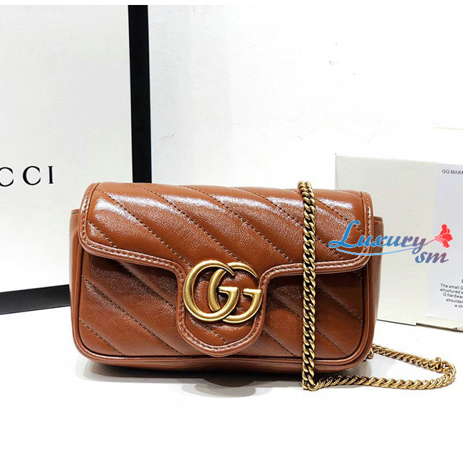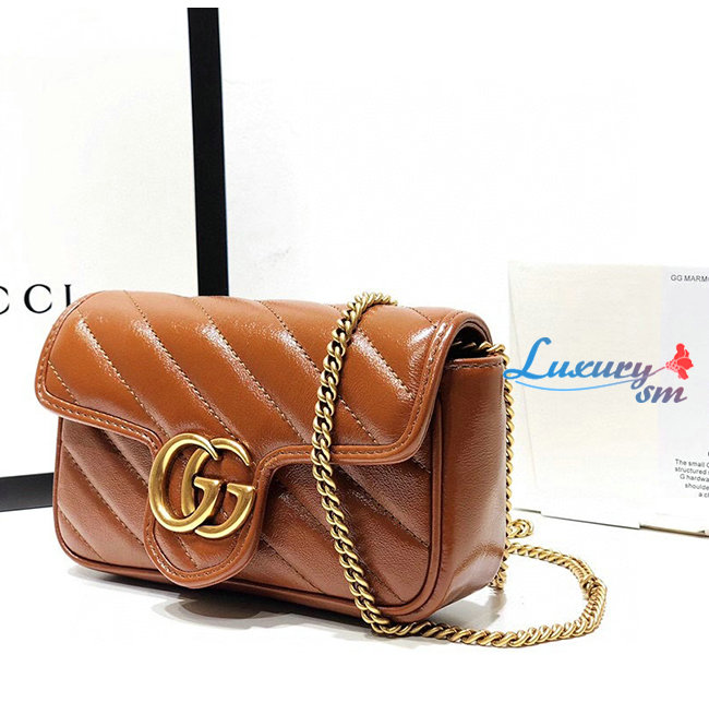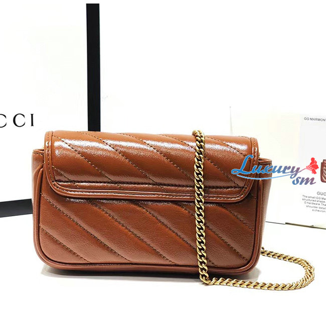 [스페셜오더]GUCCI-476433 2535 구찌 GG 마몽 브라운 마틀라세 가죽 수퍼 미니 백