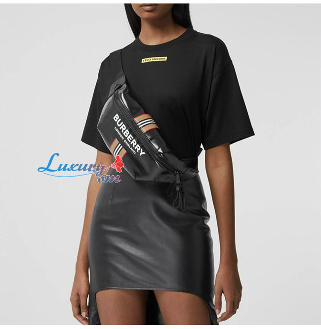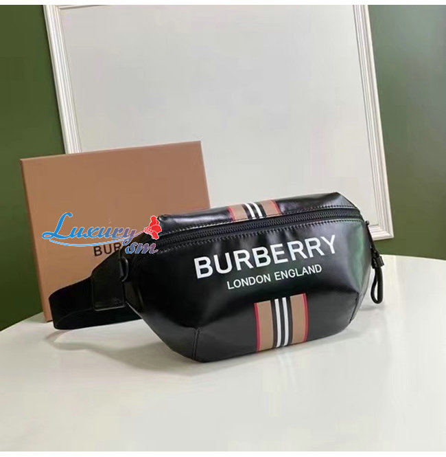 [스페셜오더]BURBERRY-80300181 버버리 블랙 로고 아이콘 스트라이프 프린트 쏘니 범 백