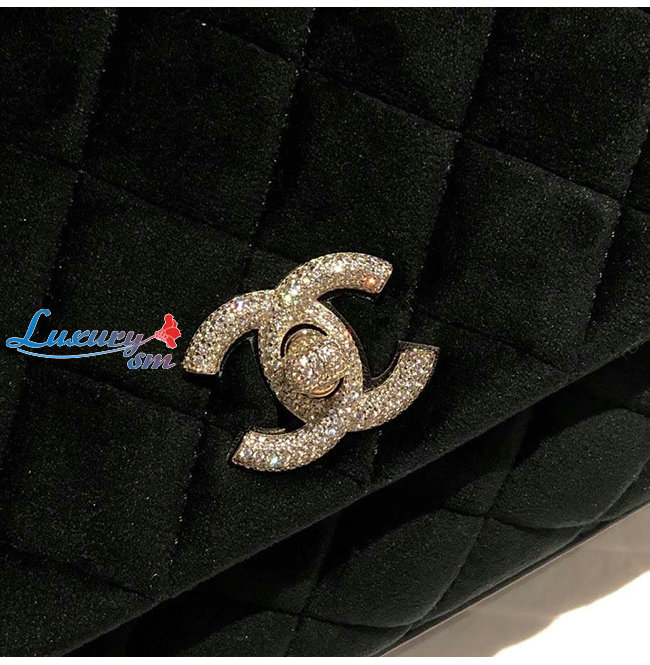 [스페셜오더]CHANEL-AS2215 샤넬 블랙 벨벳 스트라스 실버메탈 핸들 장식 미니 플랩 백