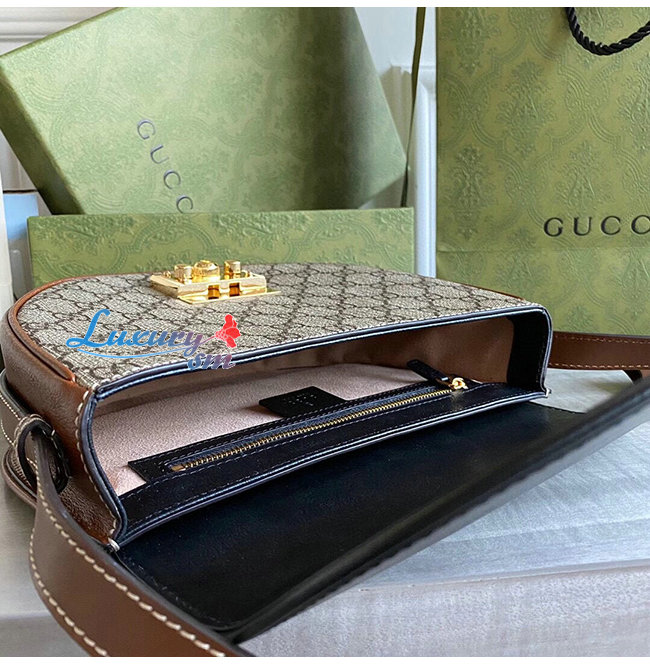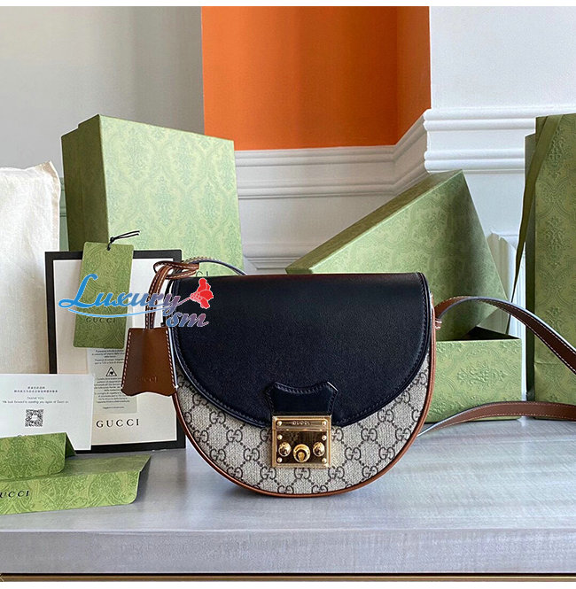 [스페셜오더]GUCCI-644524 9785 구찌 패들락 블랙 가죽 GG 수프림 캔버스 스몰 숄더백