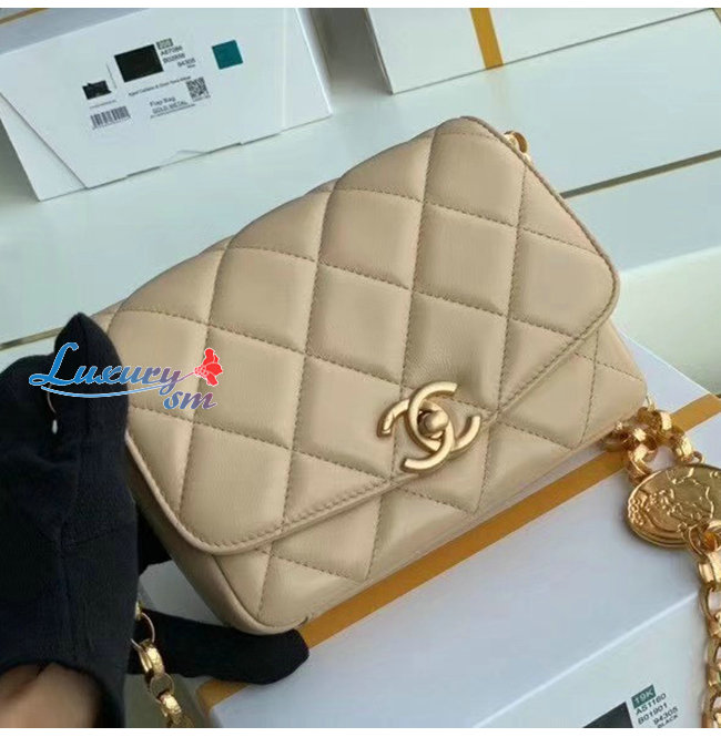 [스페셜오더]CHANEL-AS2189 샤넬 에크루 램스킨 골드 메탈 스몰 플랩 백
