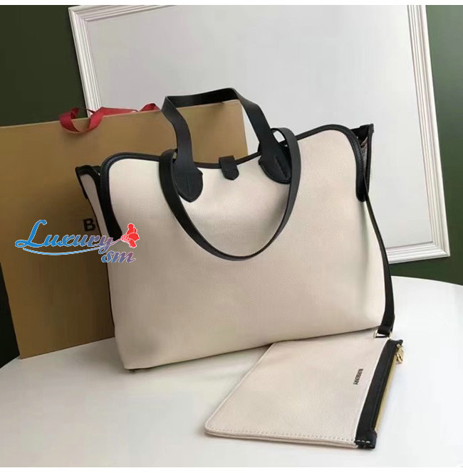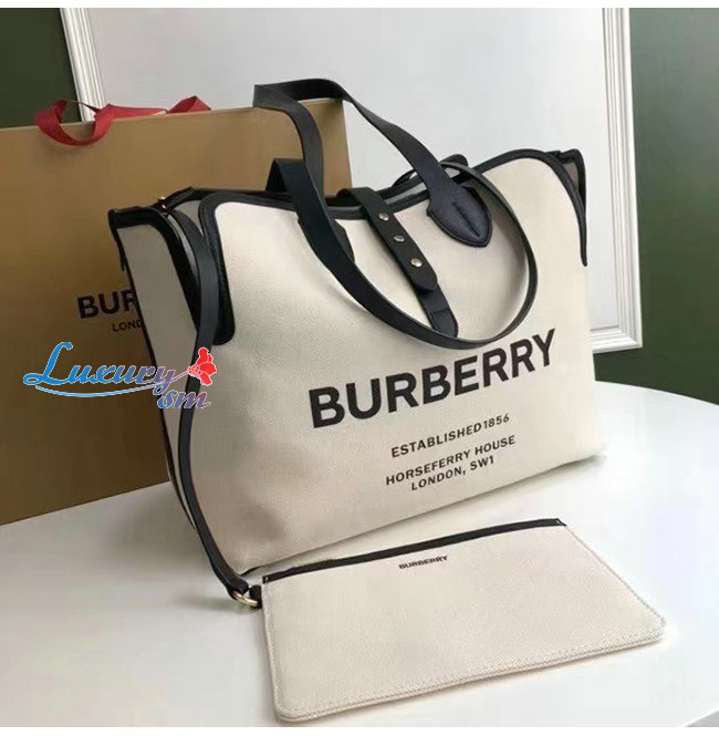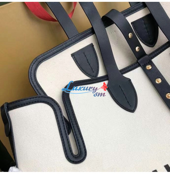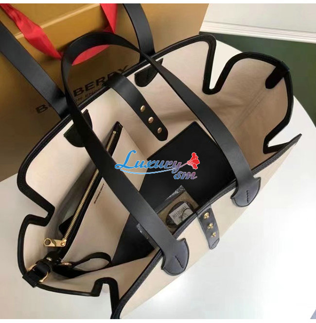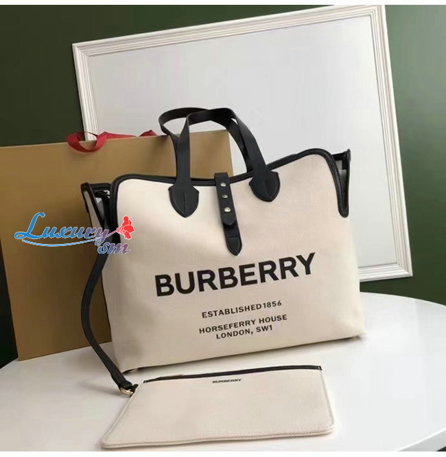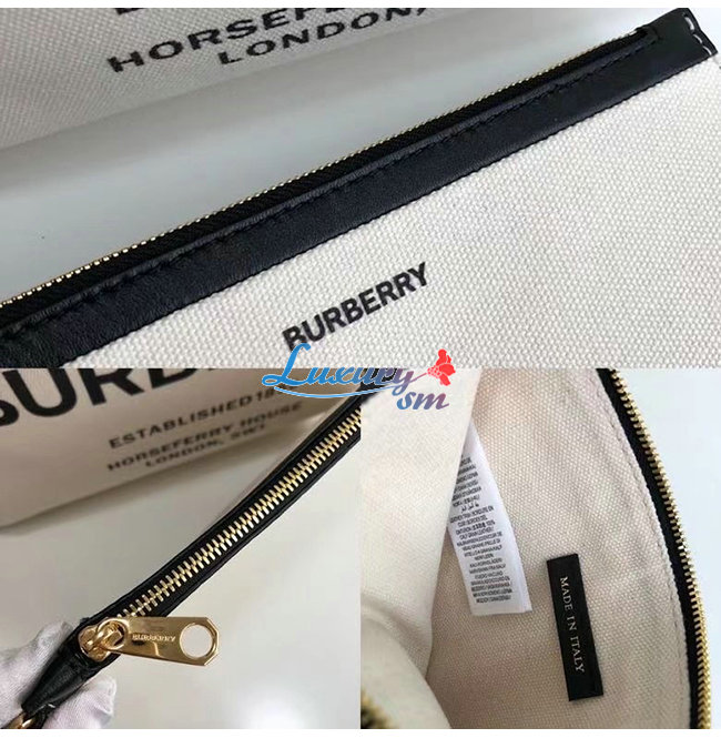 [스페셜오더]BURBERRY-80313181 버버리 화이트/블랙 미디엄 소프트 코튼 캔버스 벨트 백