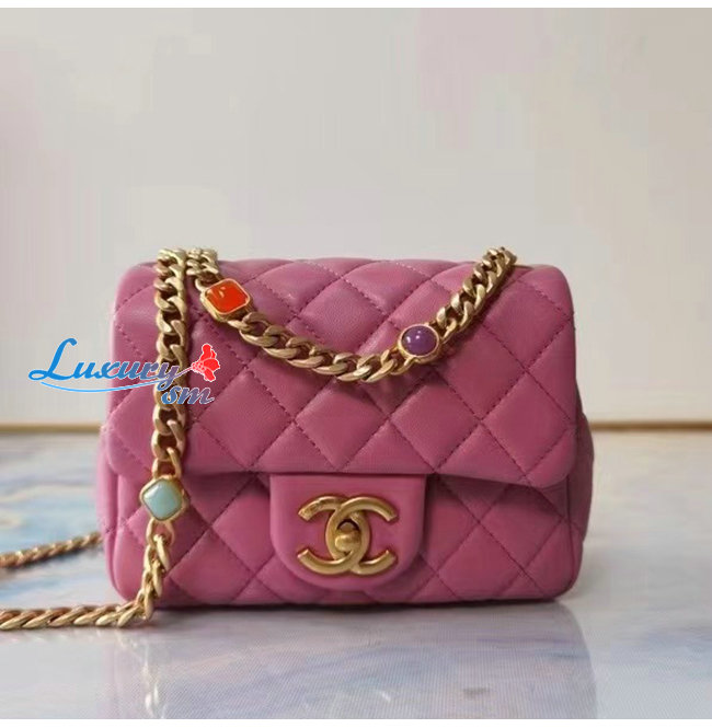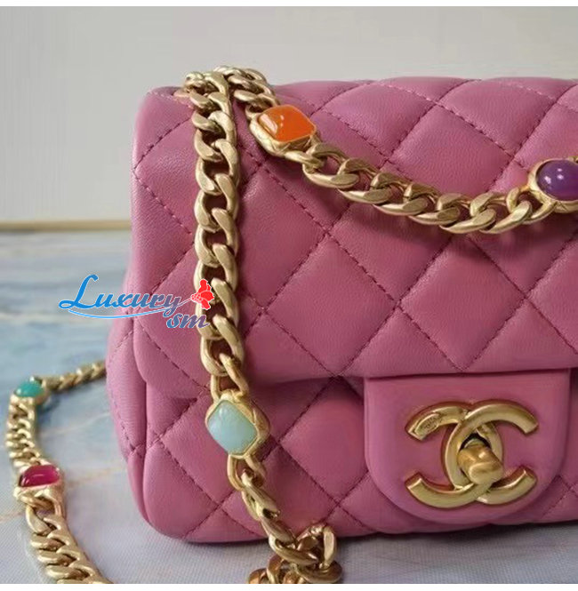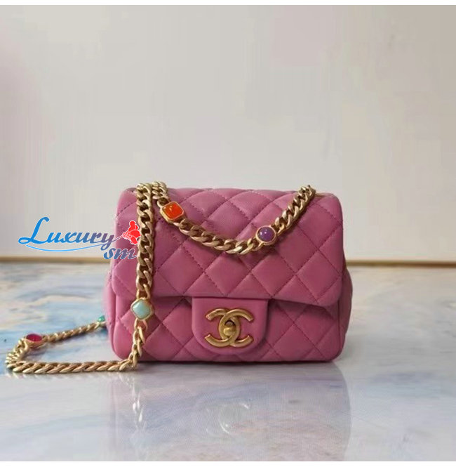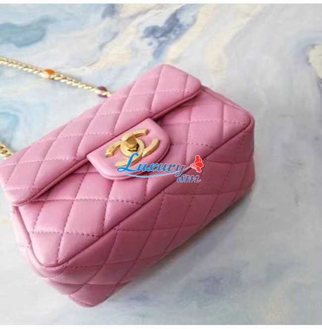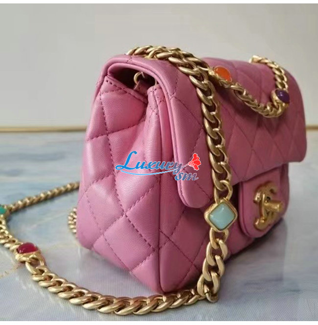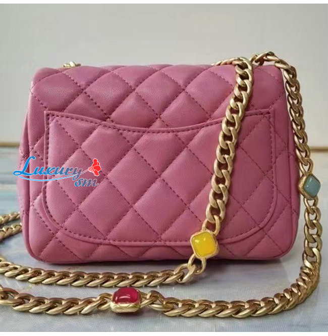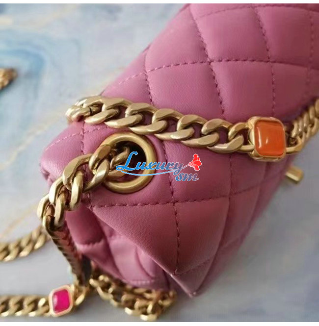 [스페셜오더]CHANEL-AS2379 샤넬 핑크 램스킨 레진 골드 메탈 플랩 백