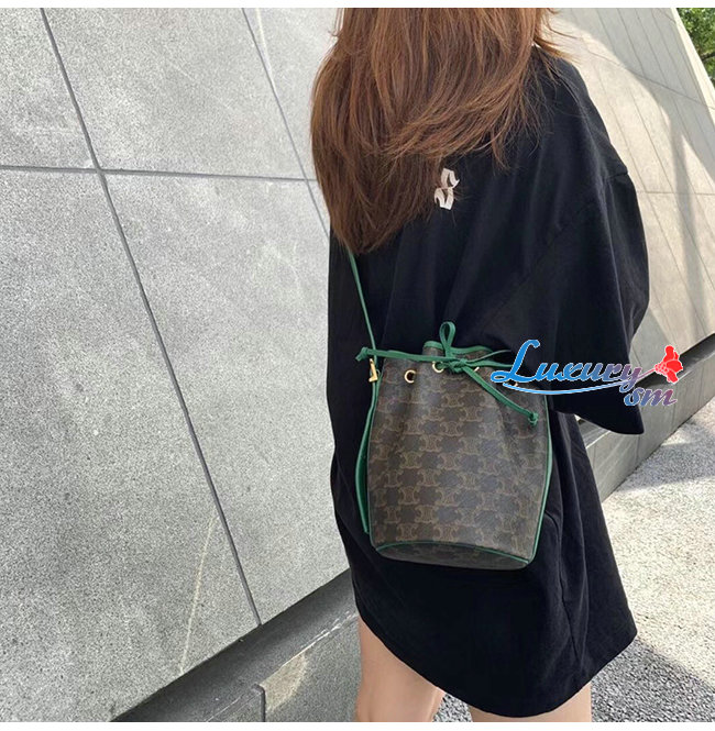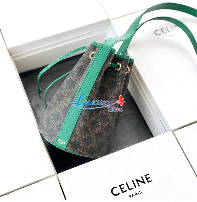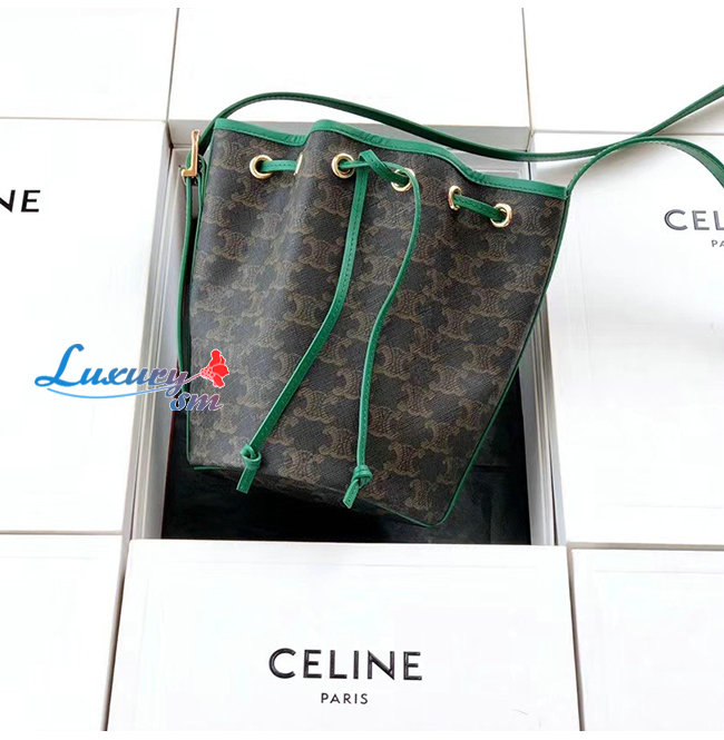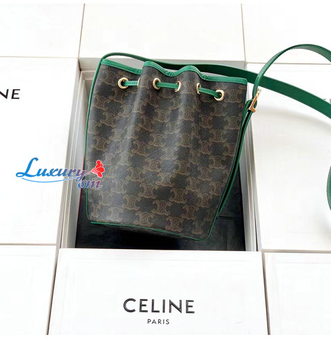 [스페셜오더]CELINE-191142 셀린느 그린 트리오페 캔버스 스몰 드로스트링 백