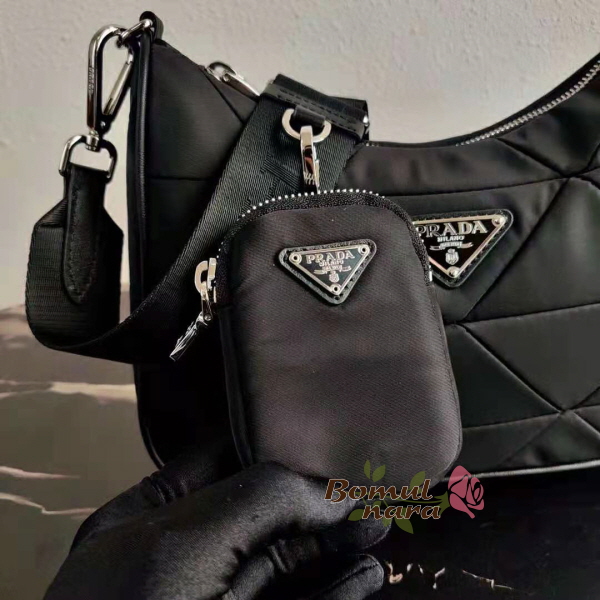 ▶지퍼 포켓이 있는 프라다 로고 나일론 라이닝