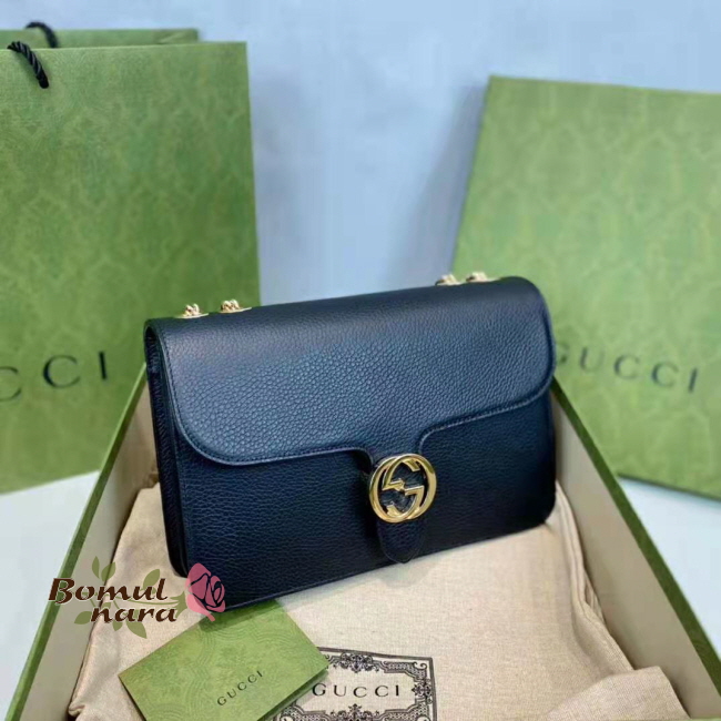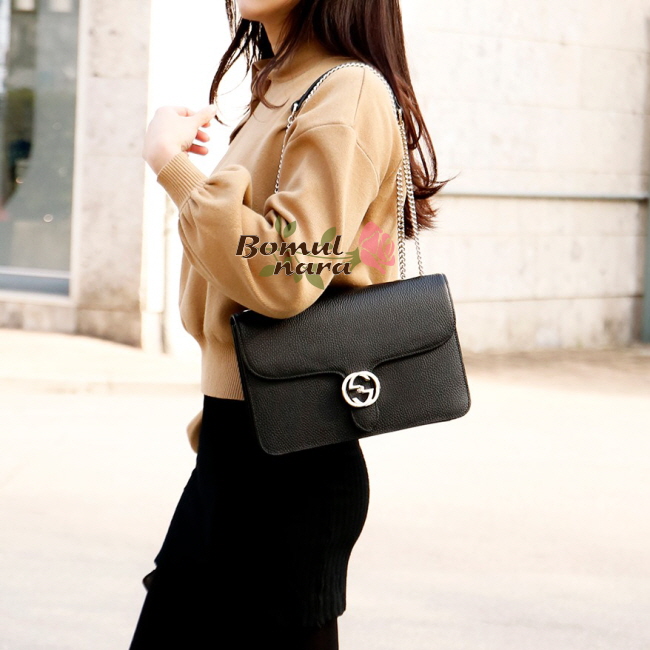 [스페셜오더]GUCCI-510303 1000 구찌 블랙 GG 인터로킹 미디엄 체인 숄더백