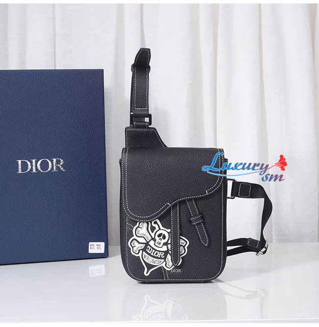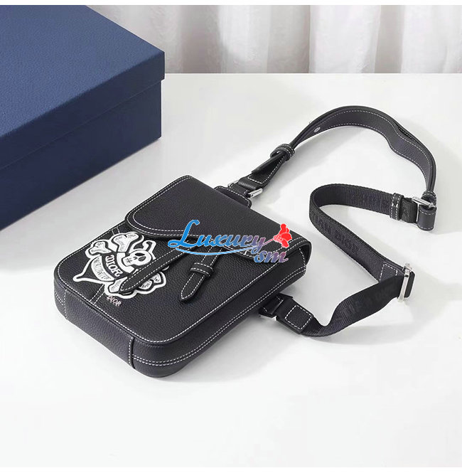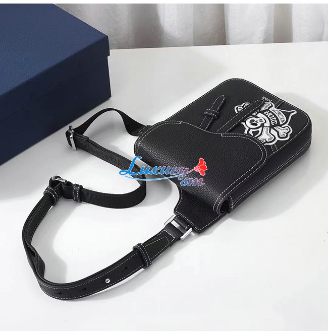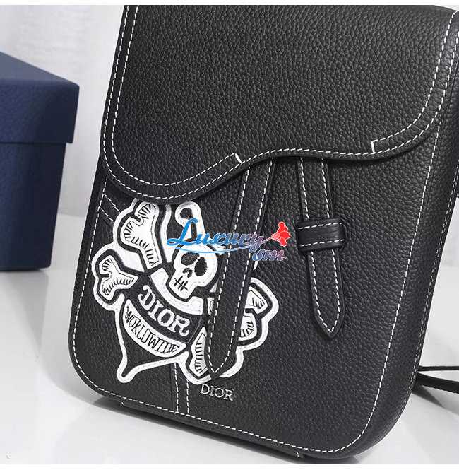 [스페셜오더]DIOR-1ADPO171 디올 블랙 그레인 송아지 가죽 DIOR AND SHAWN 꿀벌 패치 자수 SADDLE 파우치