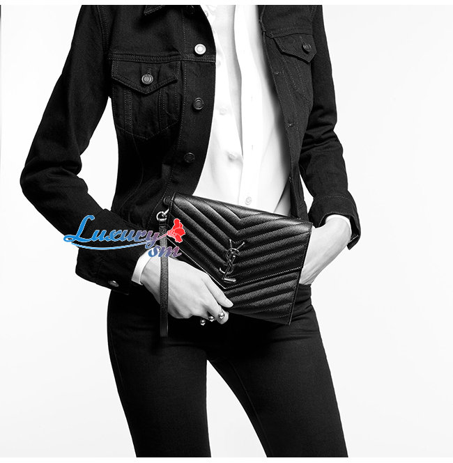 [스페셜오더]SAINT LAURENT-617662 생 로랑 블랙 퀼트 그랑 드 뿌드르 엠보스드 가죽 MONOGRAM 클러치