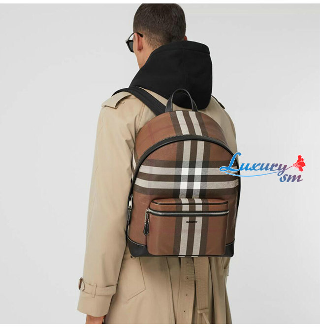 BURBERRY-80365491 버버리 다크 버치 브라운 체크 E-캔버스 백팩