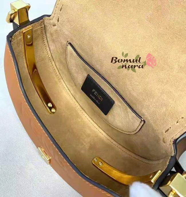 핸드 스티치 브라운 가죽 사첼, 아이코닉한 FF 모티프의