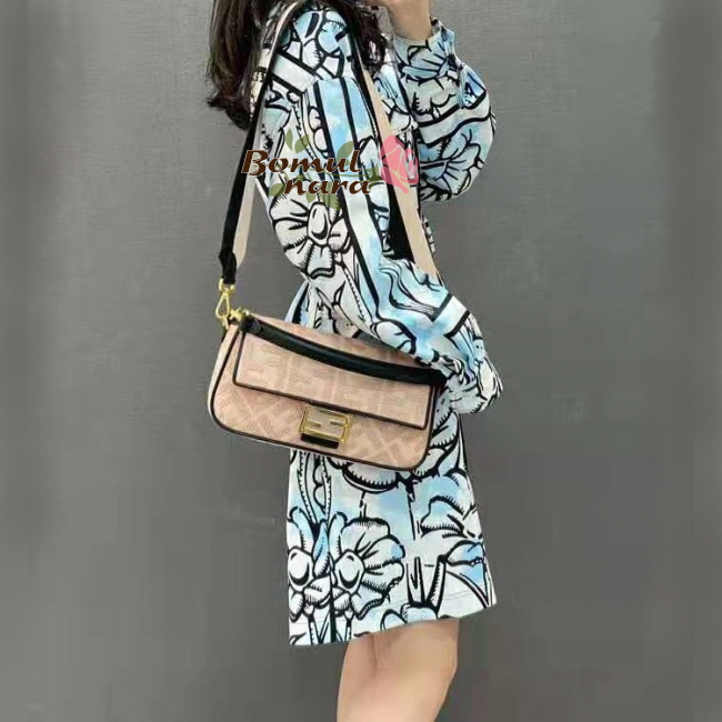 럭셔리 펜디 FF시그니처 핑크캔버스 바디 바게트백