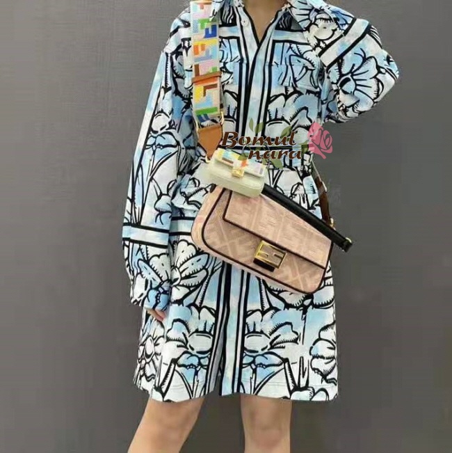 [스페셜오더]FENDI-8BR600 펜디 핑크 FF 모티프 양가죽 미디엄 바게트백