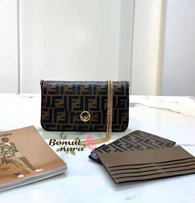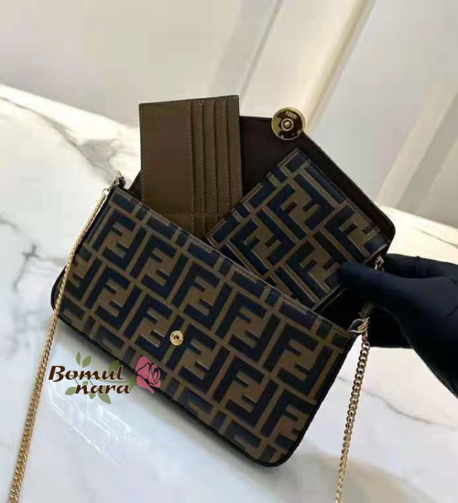[스페셜오더]FENDI-8BS032 펜디 브라운 FF 파우치 지갑 체인 미니 백 #펜디이미테이션