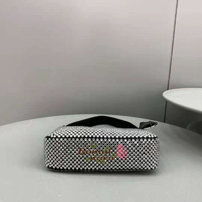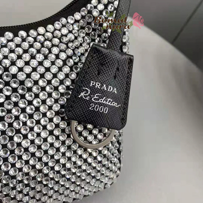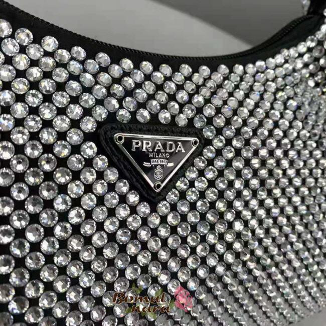 프라다를 상징하는이 미니 호보백은 인공 크리스탈 장식으로