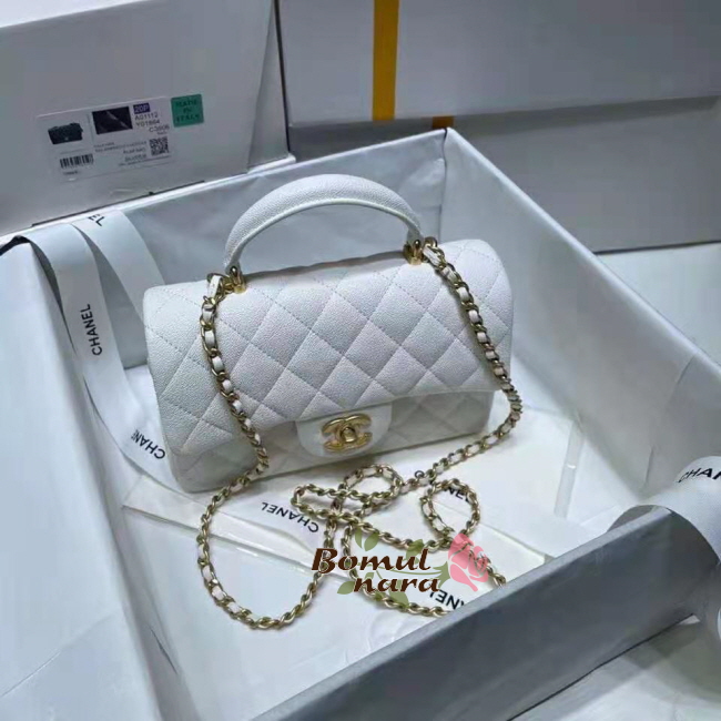 [스페셜오더]CHANEL-AS2431 샤넬 화이트 캐비어 골드 핸들 장식 미니 플랩 백
