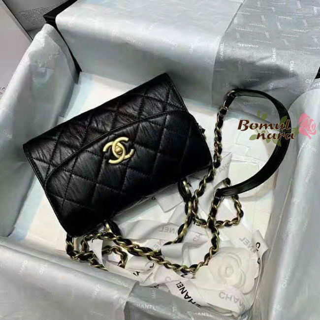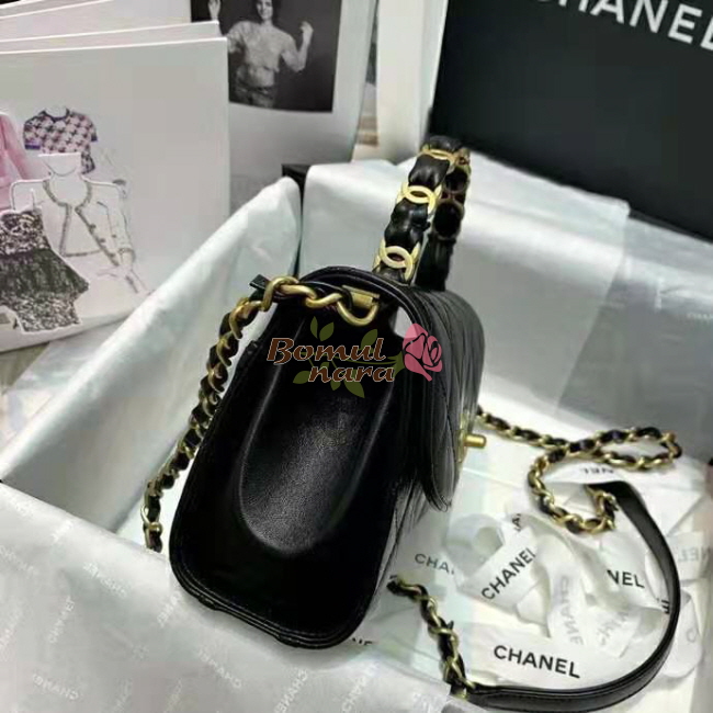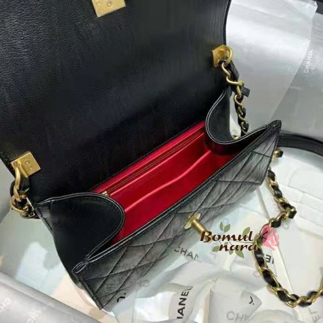 [스페셜오더]CHANEL-AS2477 샤넬 블랙 크럼플드 램스킨 CC로고 핸들 장식 미니 플랩 백