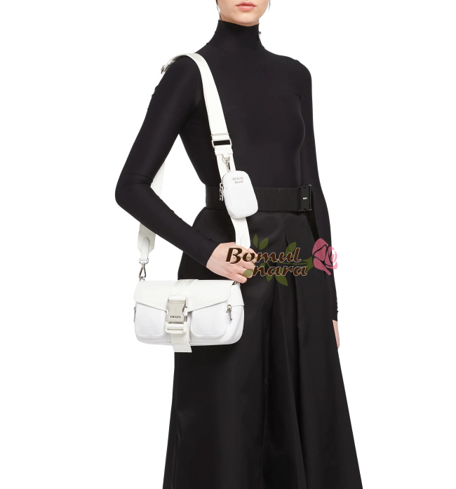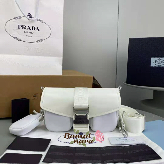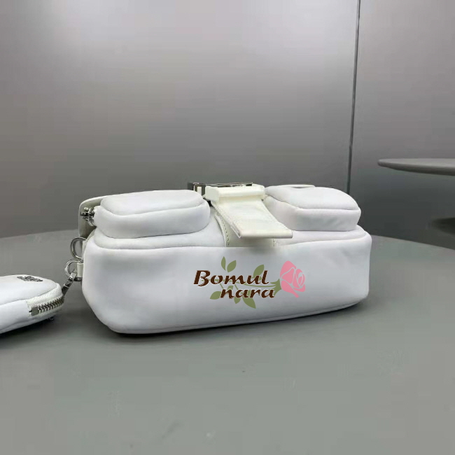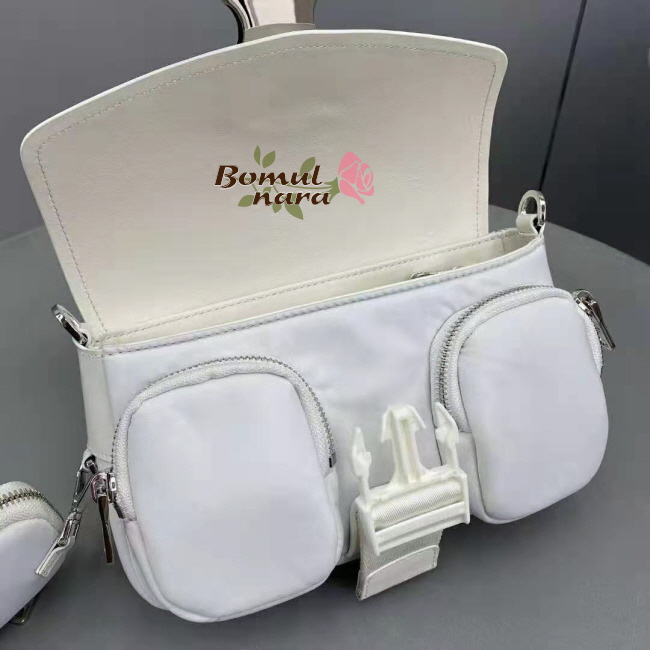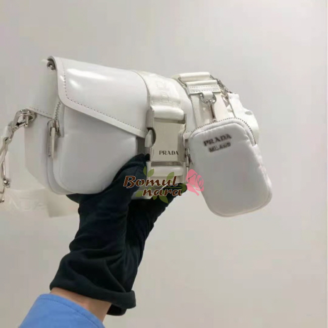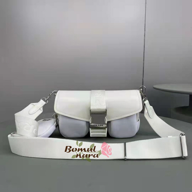 [스페셜오더]PRADA-1BD295 프라다 화이트 나일론 브러시드 가죽 포켓 숄더 백