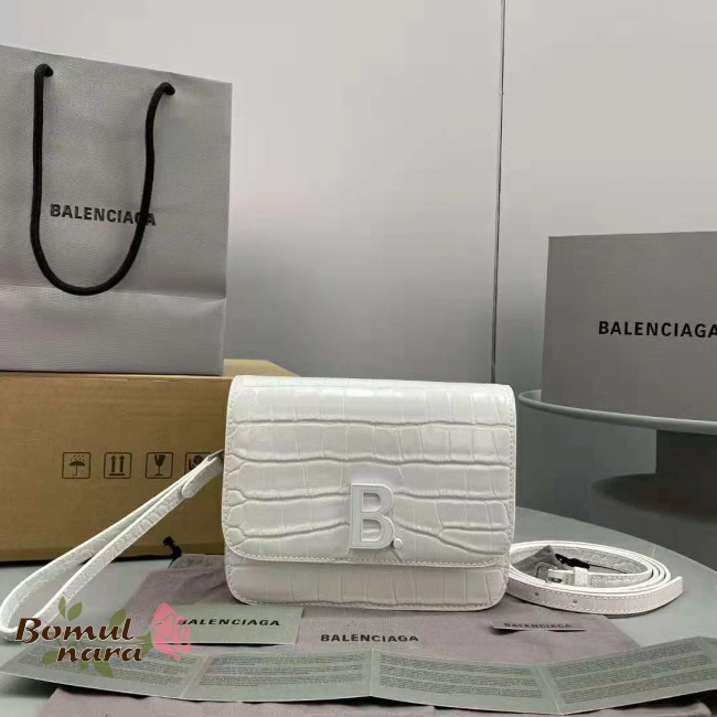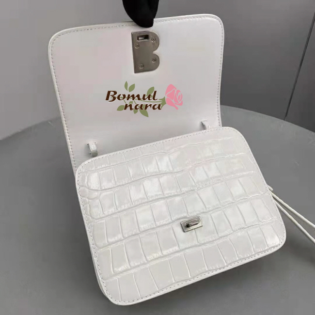 [스페셜오더]BALENCIAGA-6181561 발렌시아가 화이트 크로커다일 엠보싱 B. 스몰 숄더백