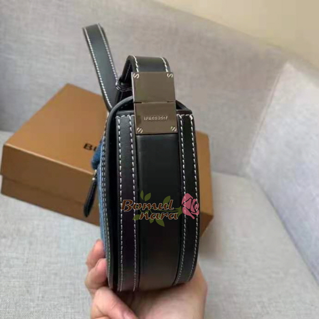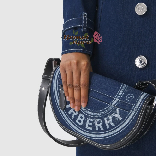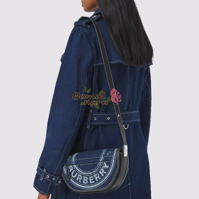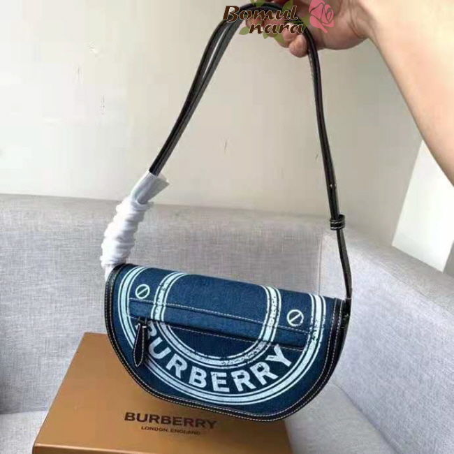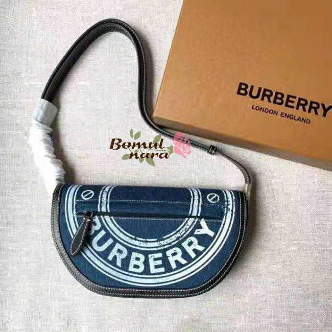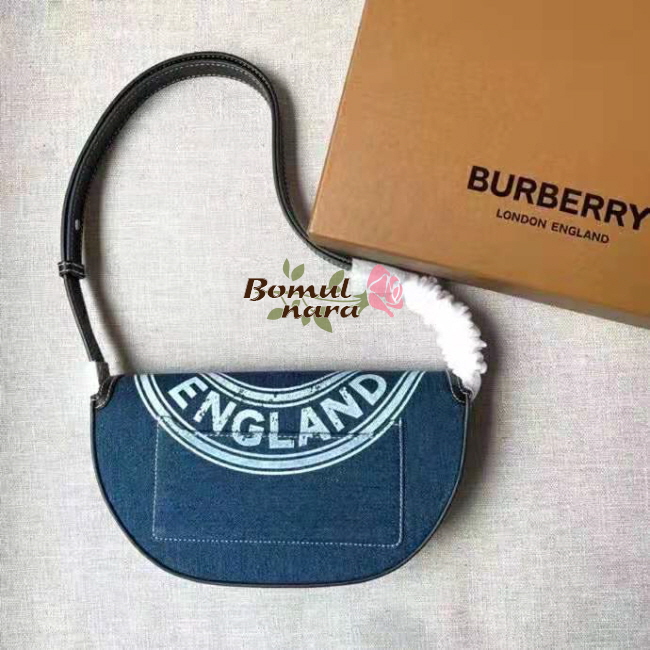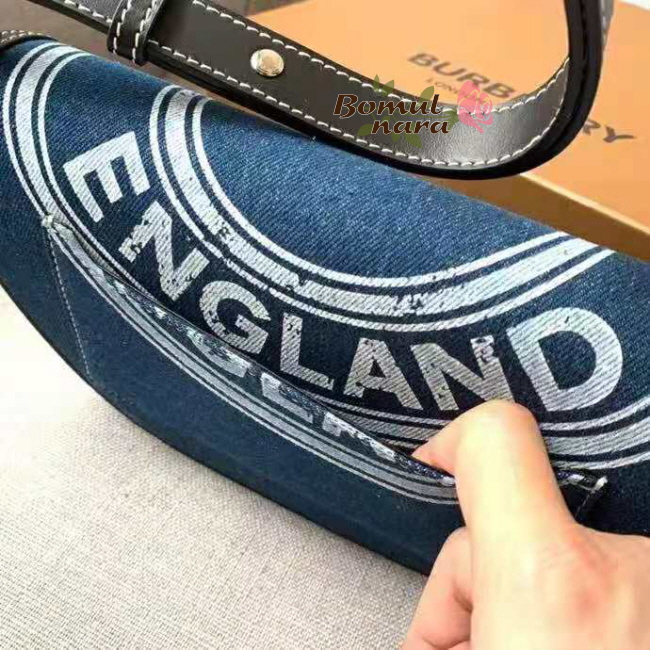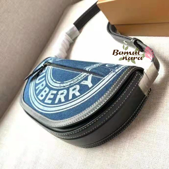 [스페셜오더]BURBERRY-80397511 버버리 다크 블루 로고 그래픽 데님 레더 스몰 올림피아 백
