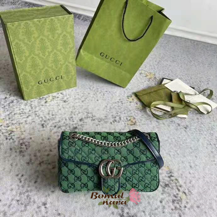 [스페셜오더]GUCCI-443497 3120 구찌 GG Marmont 그린 마틀라세 가죽 숄더 백 가격 : 380,000원
