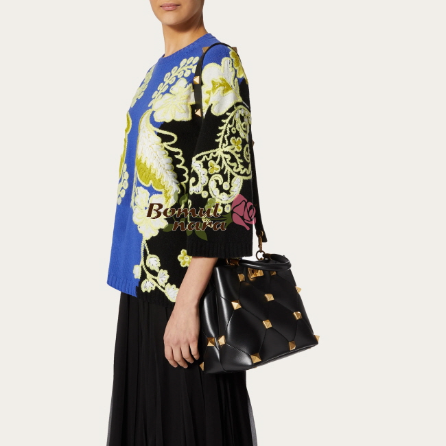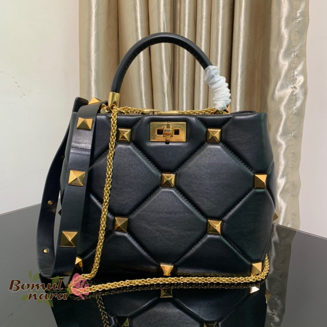 [스페셜오더]VALENTINO-WW2B02 발렌티노 블랙 로만 스터드 미디엄 탑 핸들 백
