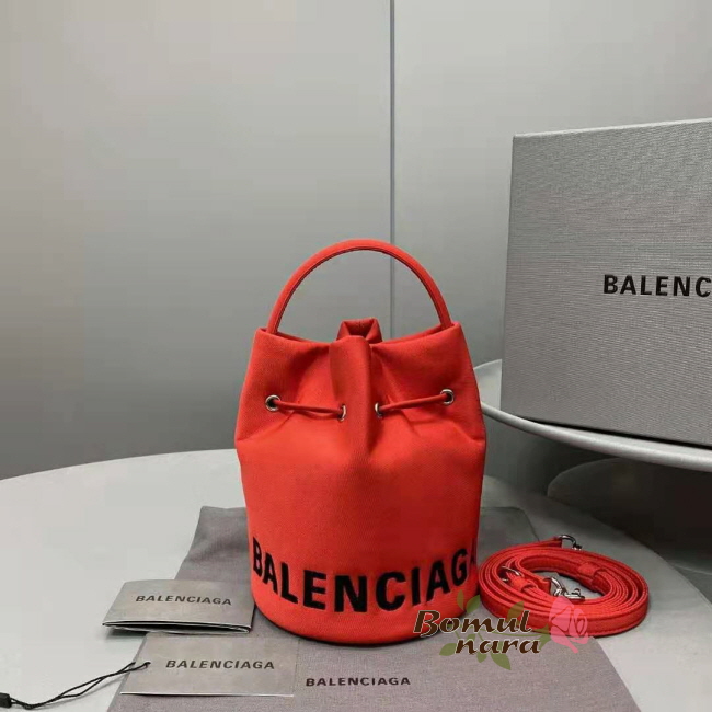 [스페셜오더]BALENCIAGA-619458 발렌시아가 레드 WHEEL XS 드로스트링 버킷