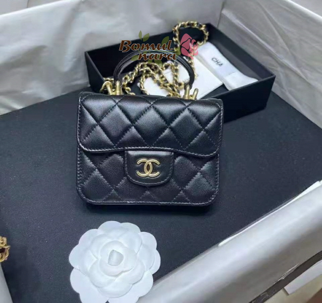 [스페셜오더]CHANEL-AP2200 샤넬 블랙 램스킨 골드 체인 플랩 동전 지갑
