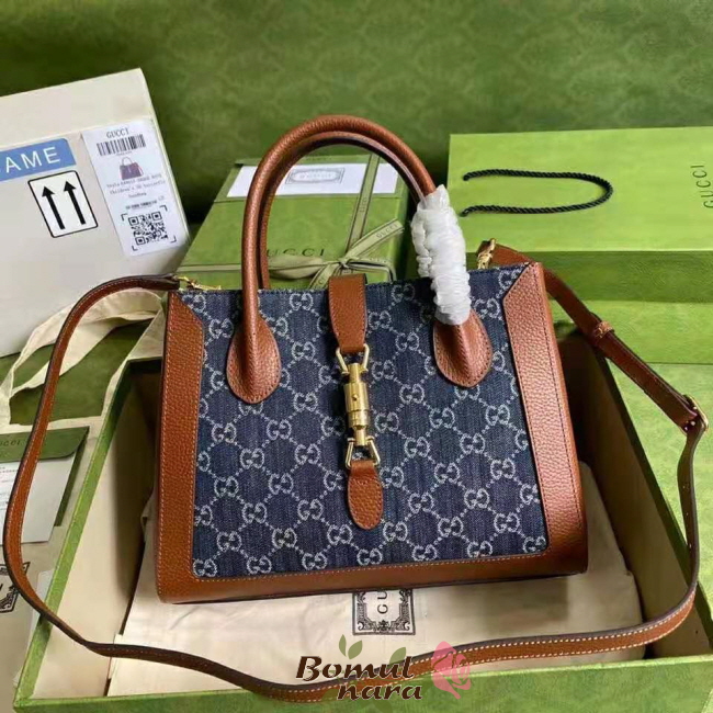 [스페셜오더]GUCCI-649016 8375 구찌 다크 블루&아이보리 재키 1961 GG 데님 미디엄 토트백