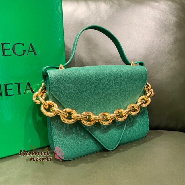 가방 전면의 체인 디테일과 V 쉐입이 특징으로