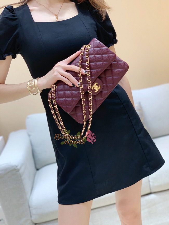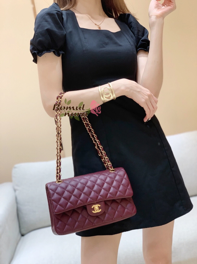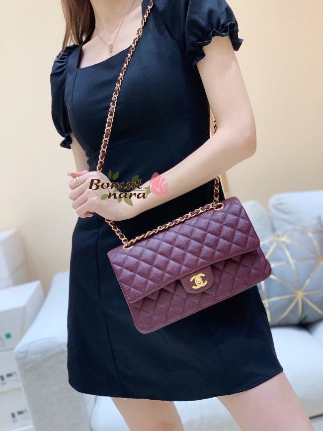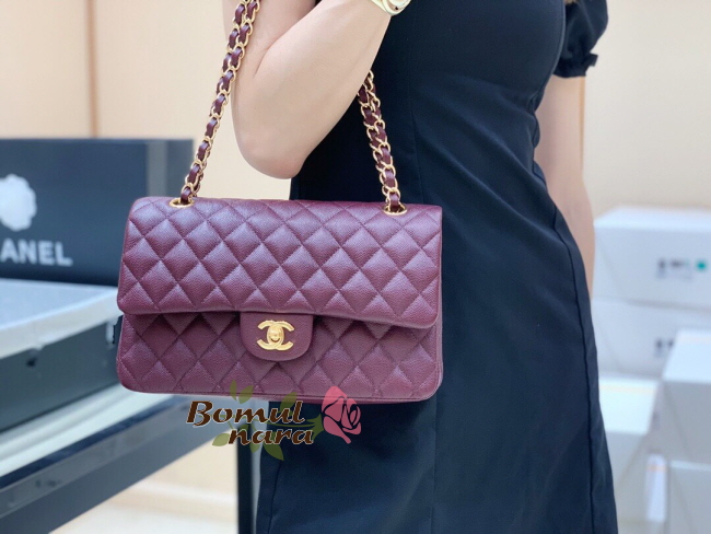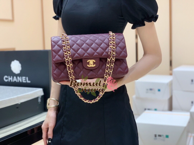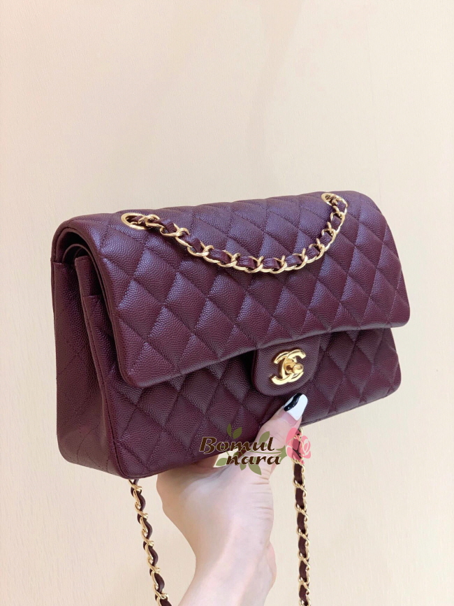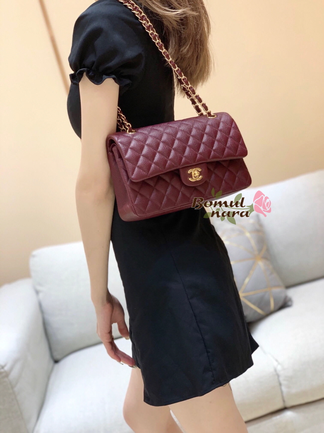 [스페셜오더]CHANEL-A01112 샤넬 버건디 캐비어 클래식 미디엄 더블 플랩백