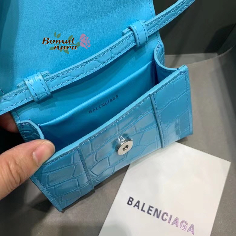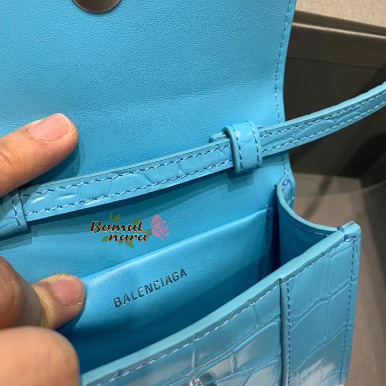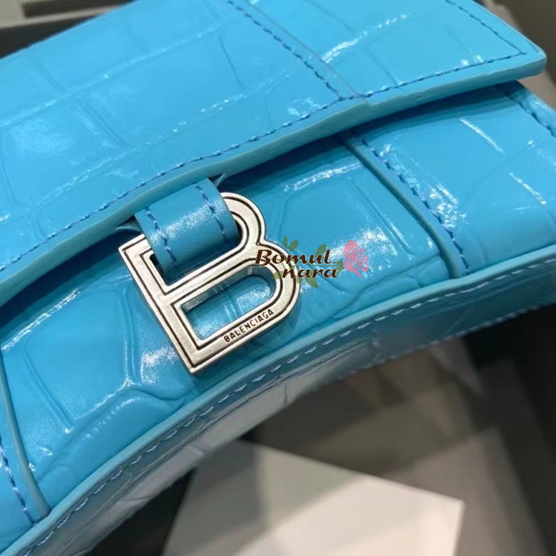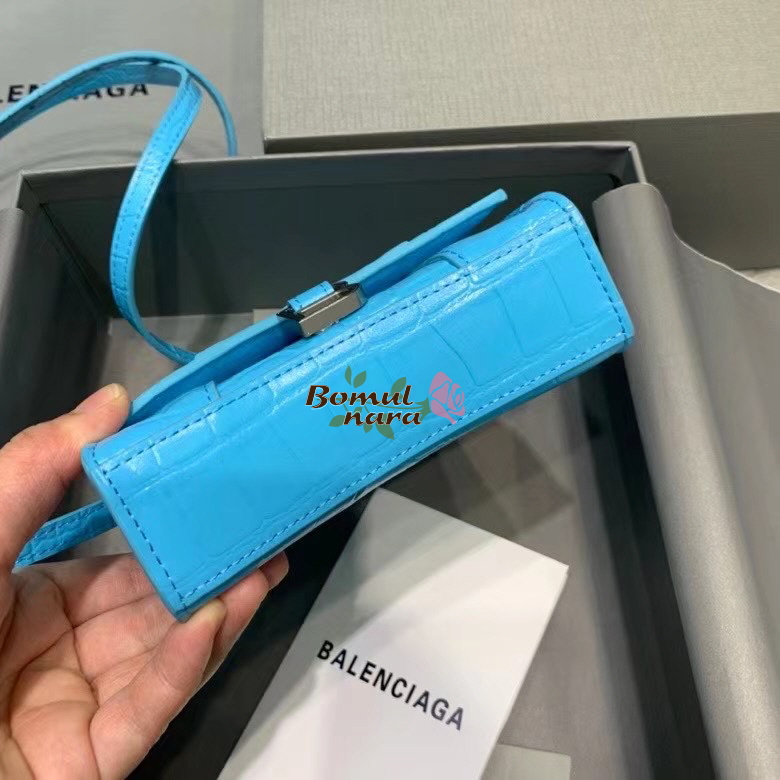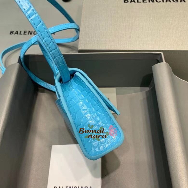 [스페셜오더]BALENCIAGA-637372 발렌시아가 블루 크로커다일 아워글래스 미니 탑 핸들 백