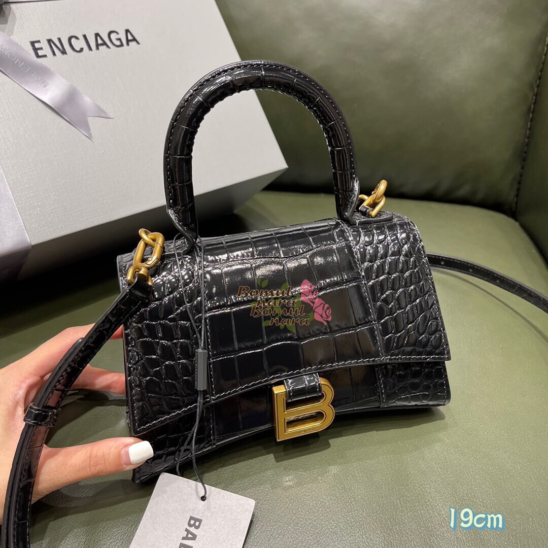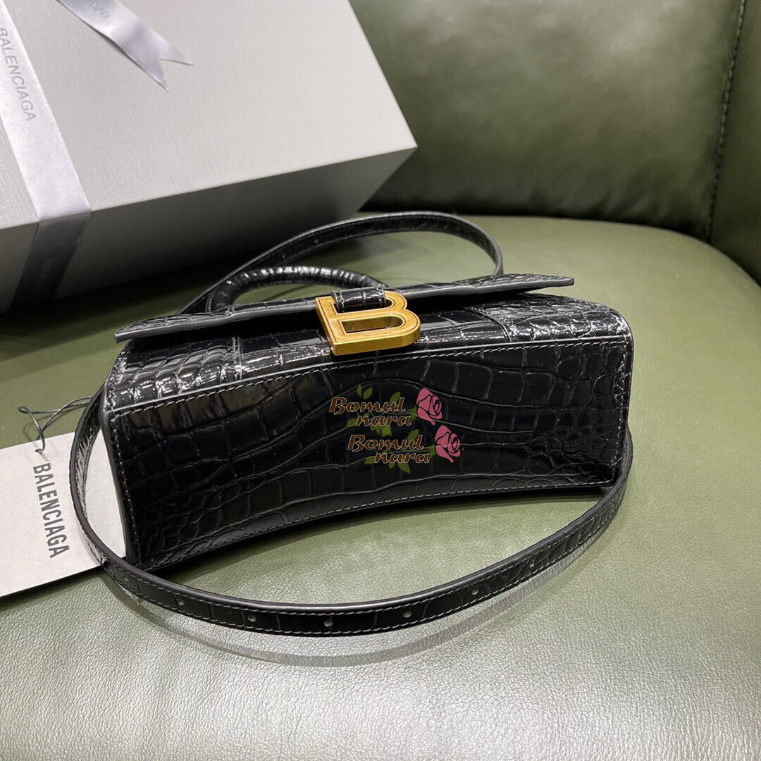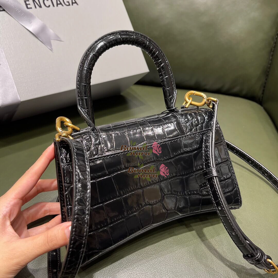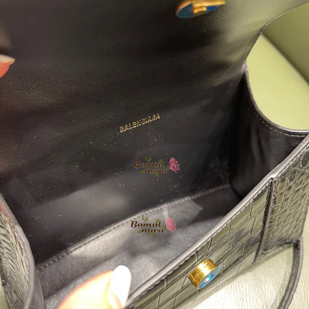 [스페셜오더]BALENCIAGA-592833 발렌시아가 블랙 크로커다일 엠보싱 송아지 가죽 아워글래스 탑 핸들 백 XS 가격 : 380,000원