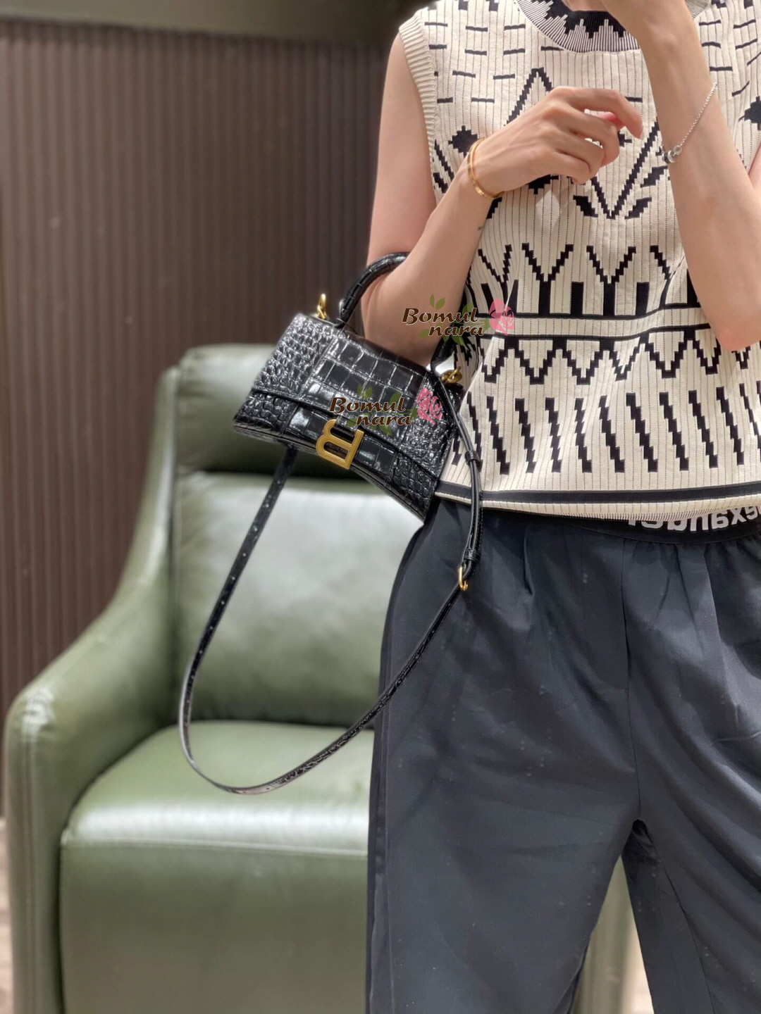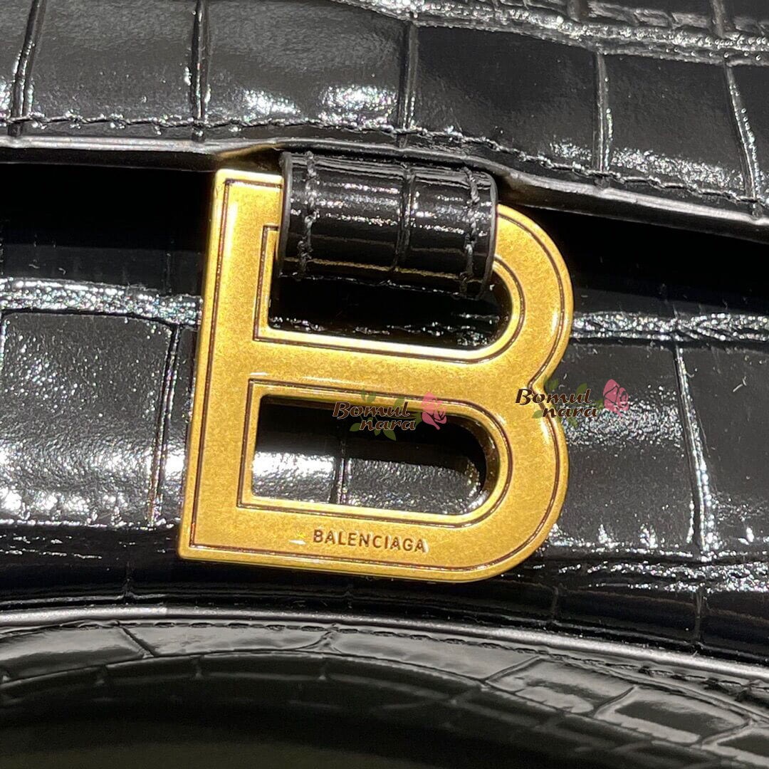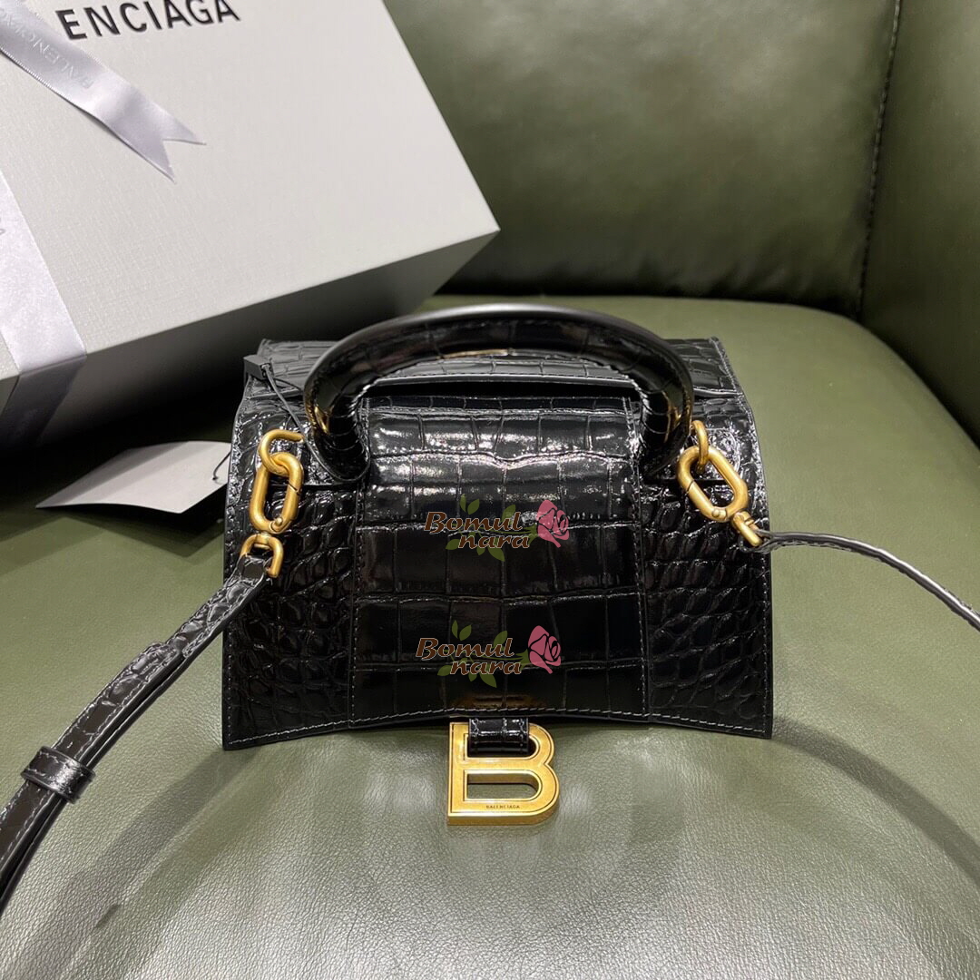 [스페셜오더]BALENCIAGA-592833 발렌시아가 블랙 크로커다일 엠보싱 송아지 가죽 아워글래스 탑 핸들 백 XS 가격 : 380,000원
