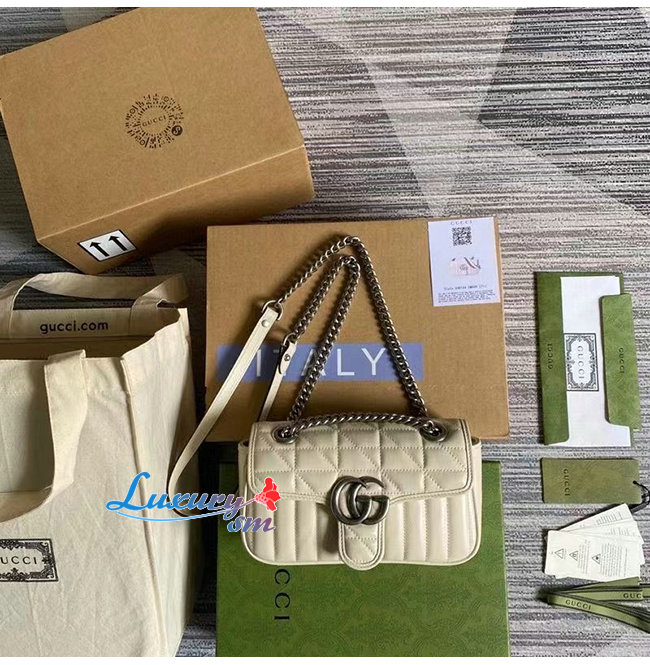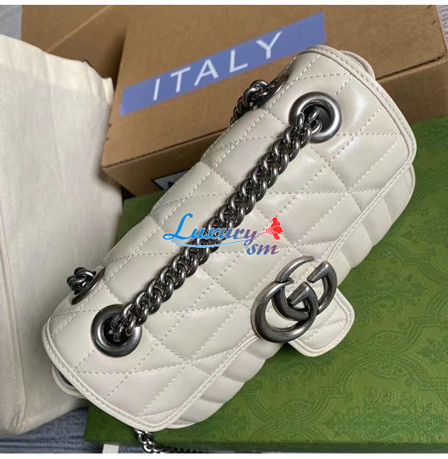 [스페셜오더]GUCCI-446744 9022 구찌 GG 마몽 화이트 가죽 미니 숄더백