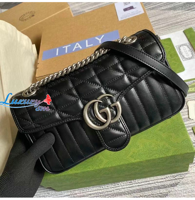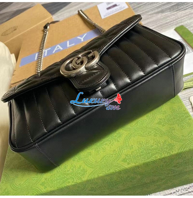 [스페셜오더]GUCCI-443497 8277 구찌 GG 마몽 블랙 사선형 마틀라세 가죽 스몰 숄더백