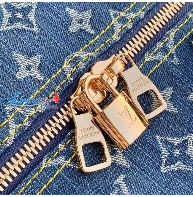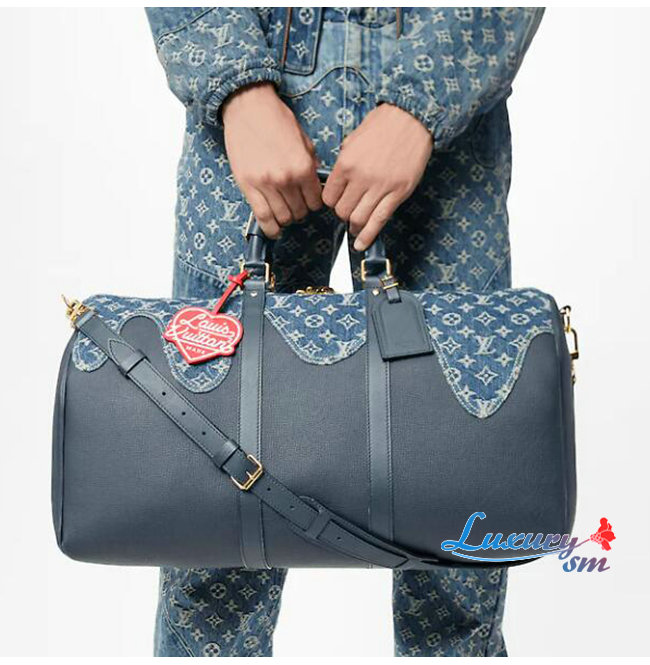 루이 비통의 가장 유명한 패턴을 입힌 블루데님