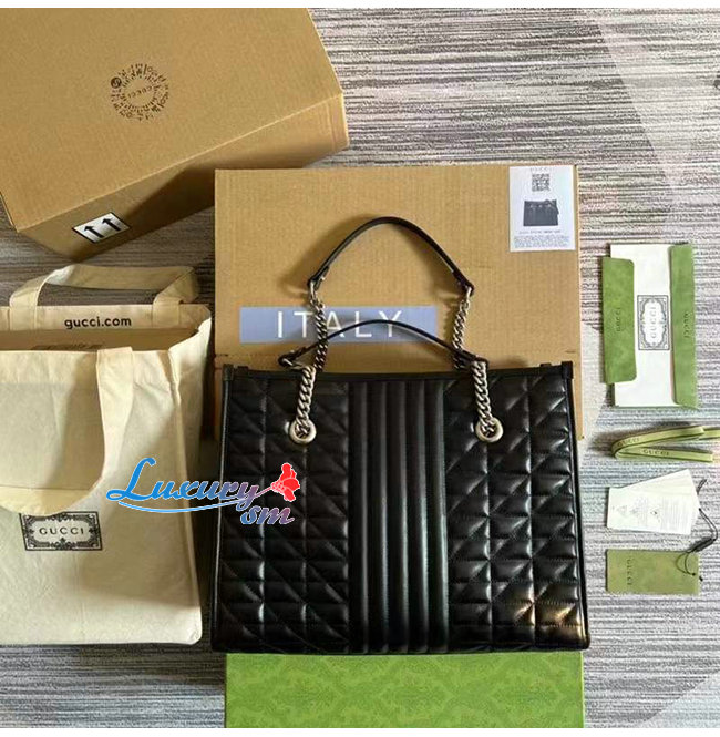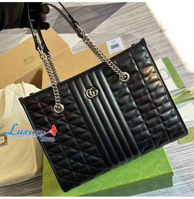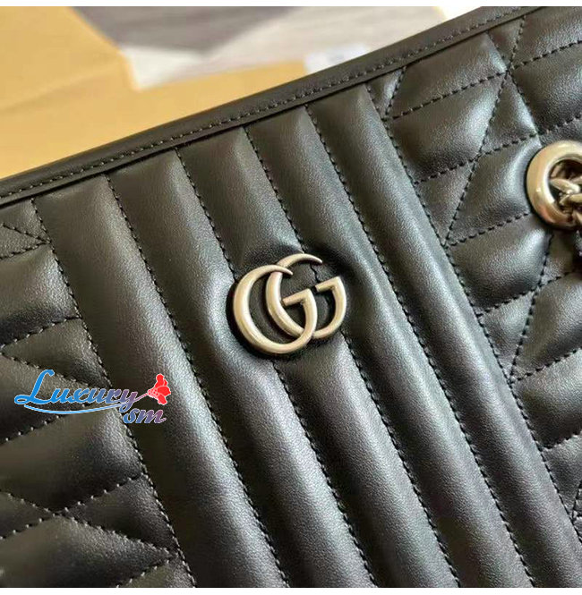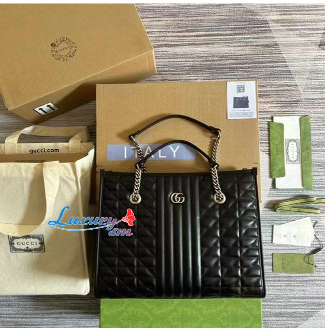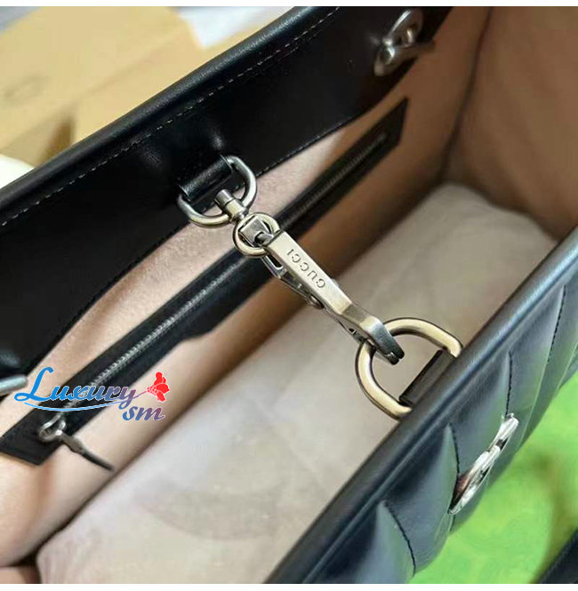 [스페셜오더]GUCCI-675796 1000 구찌 GG 마몽 블랙 가죽 미디업 토트백