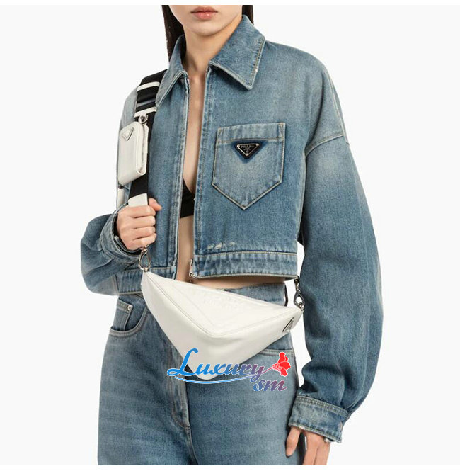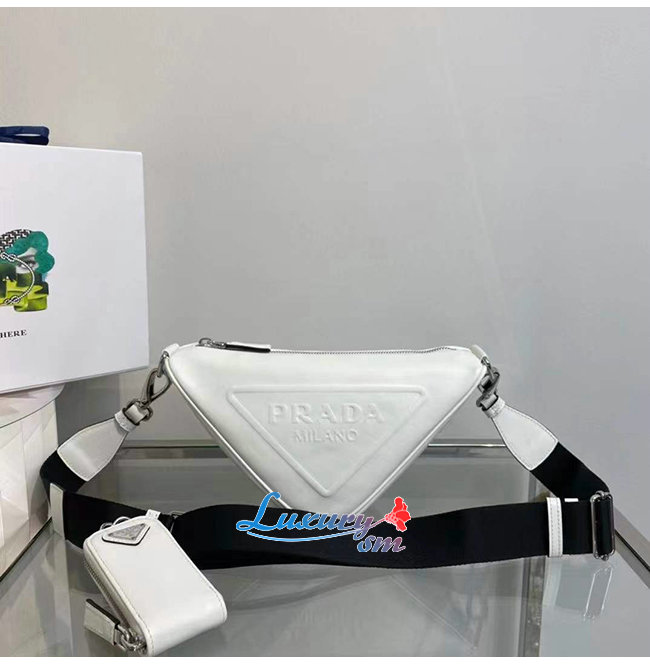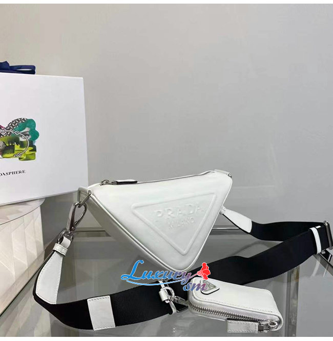 [스페셜오더]PRADA-1BH190 프라다 화이트 송아지 가죽 트라이앵글 숄더 백