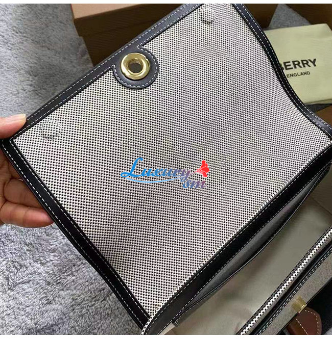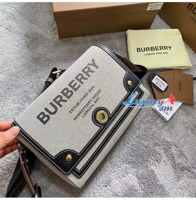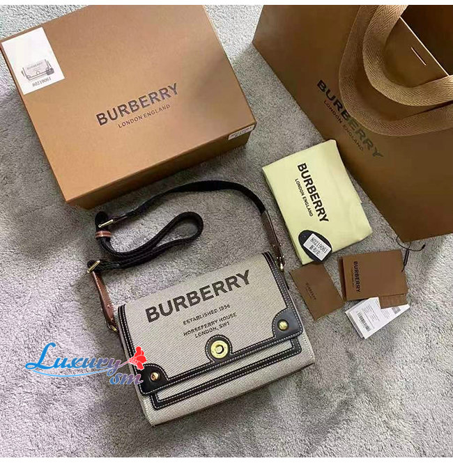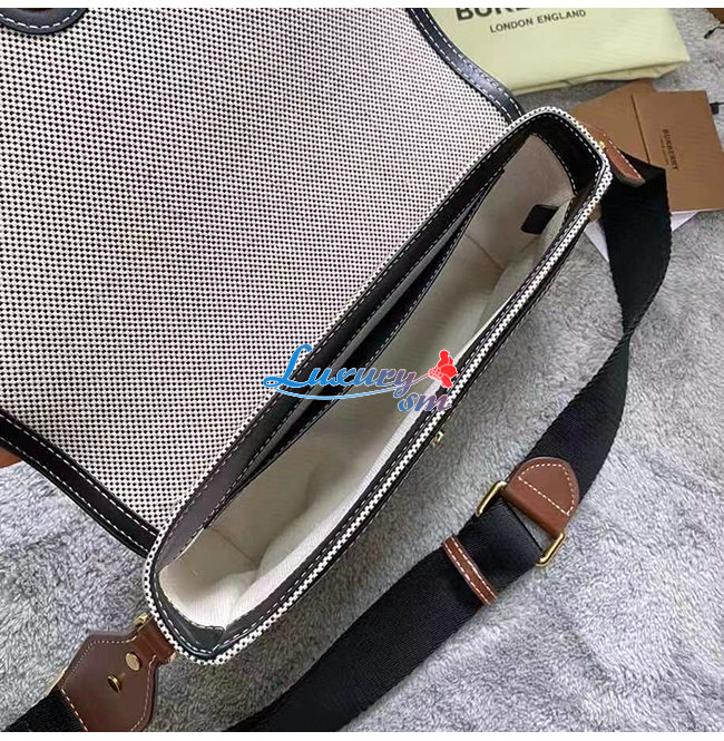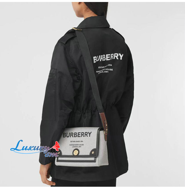[스페셜오더]BURBERRY-80557481 버버리 블랙 호스페리 모티프 캔버스 노트 크로스바디 백