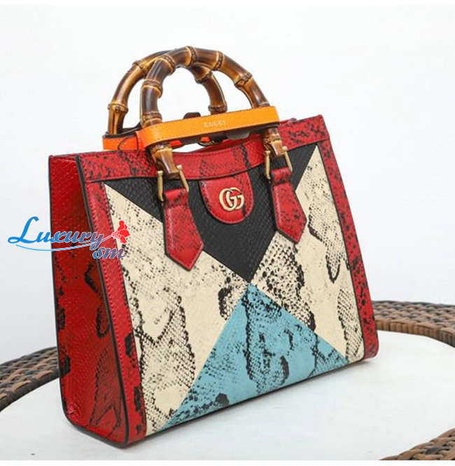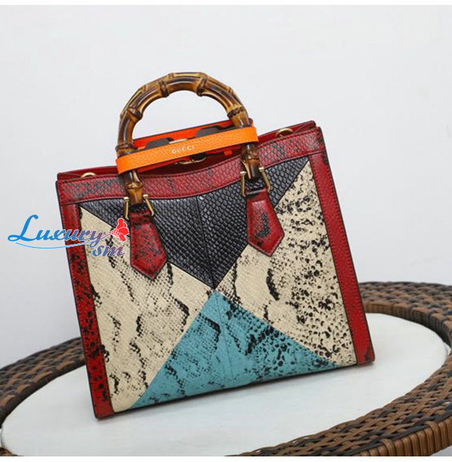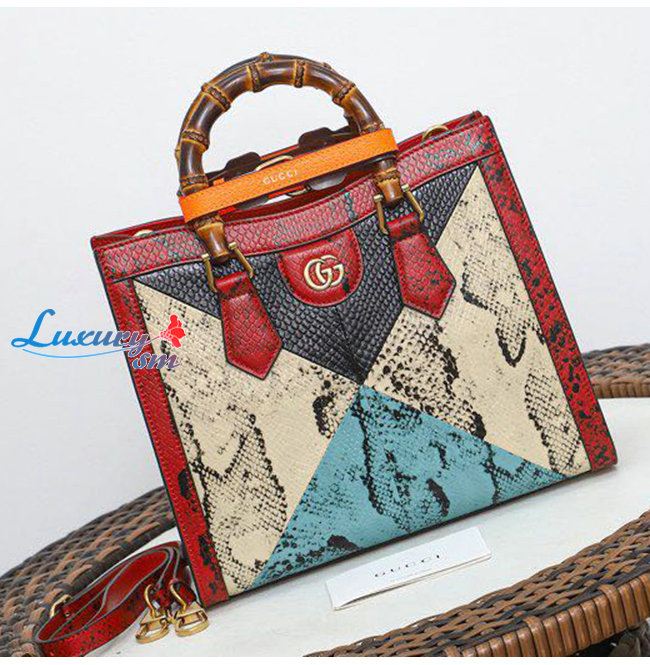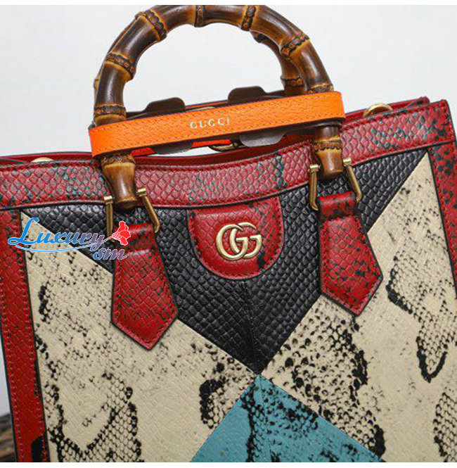 [스페셜오더]GUCCI-660195 6672 구찌 멀티컬러 파이톤 가죽 다이애나 뱀부 핸들 스몰 토트백
