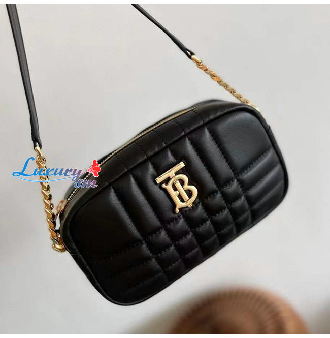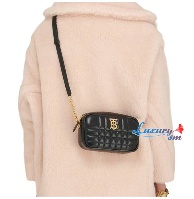 [스페셜오더]BURBERRY-80490471 버버리 블랙 미니 퀼팅 램스킨 롤라 카메라 백