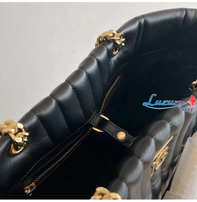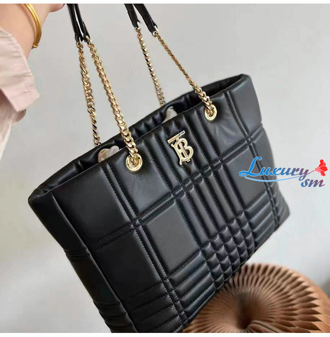 [스페셜오더]BURBERRY-80490591 버버리 블랙 미디엄 퀼팅 램스킨 롤라 쇼퍼 백