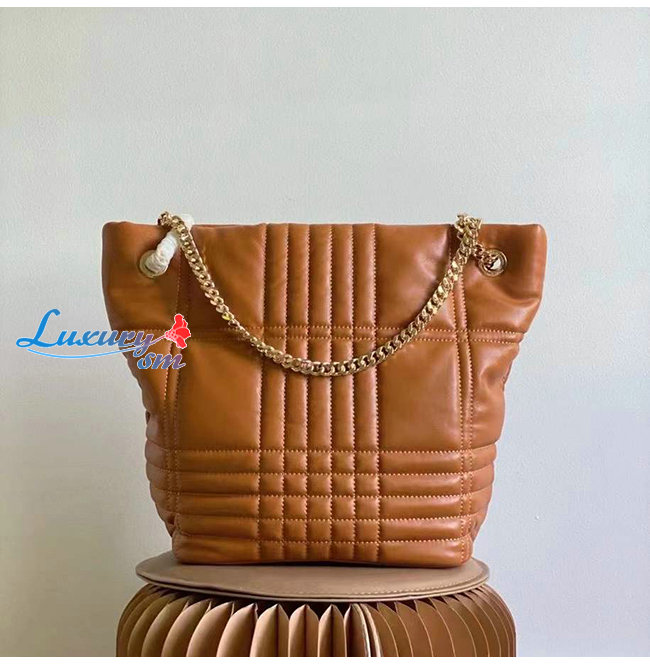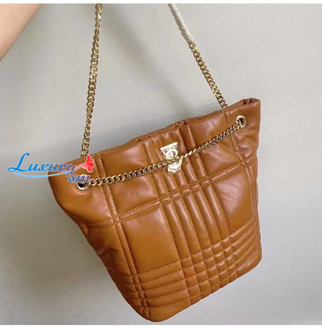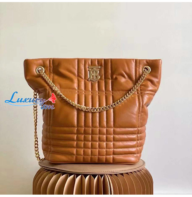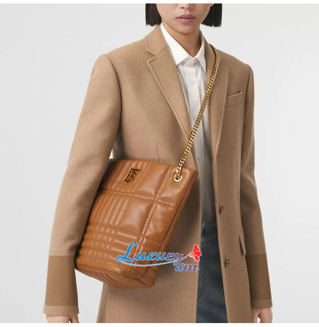 [스페셜오더]BURBERRY-80462381 버버리 브라운 미디엄 퀼팅 램스킨 롤라 버킷 백