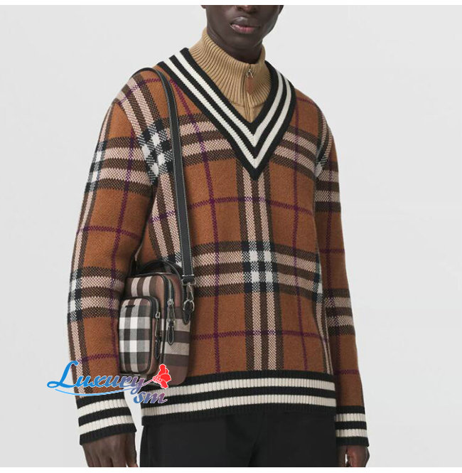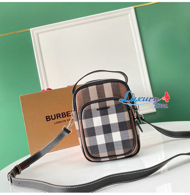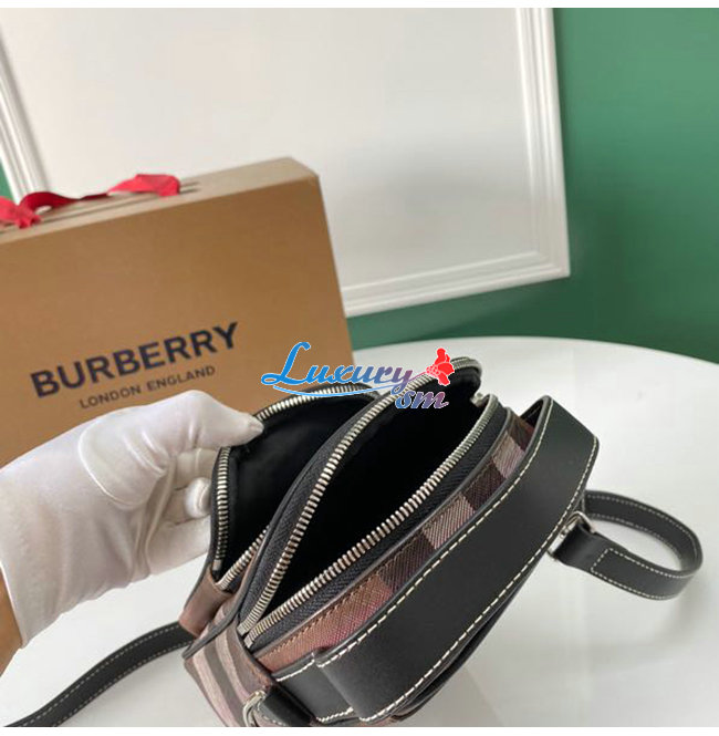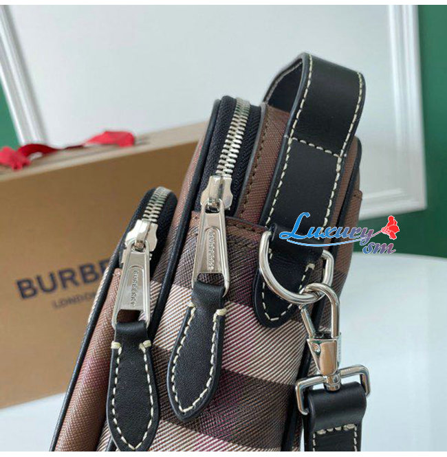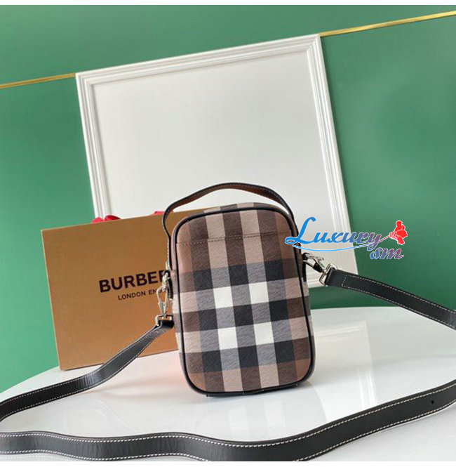 [스페셜오더]BURBERRY-80491181 버버리 다크 버치 브라운 체크 E-캔버스 크로스바디 백