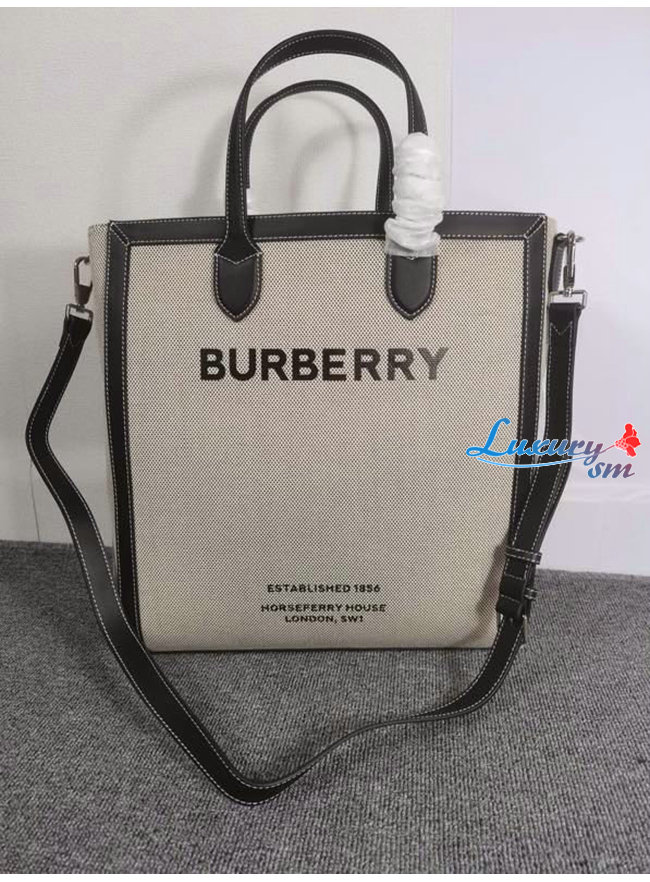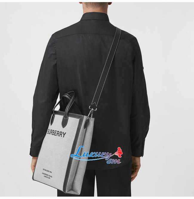 [스페셜오더]BURBERRY-80379361 버버리 블랙/그레이 호스페리 프린트 캔버스 레더 토트