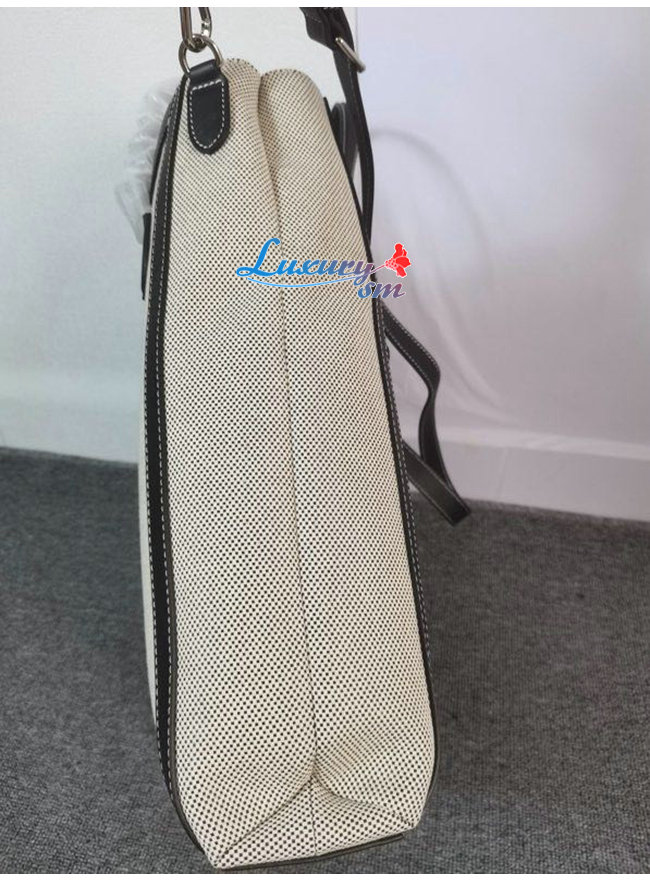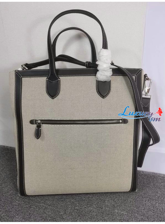 스티치 디테일의 가죽과 면 캔버스 소재로 제작된