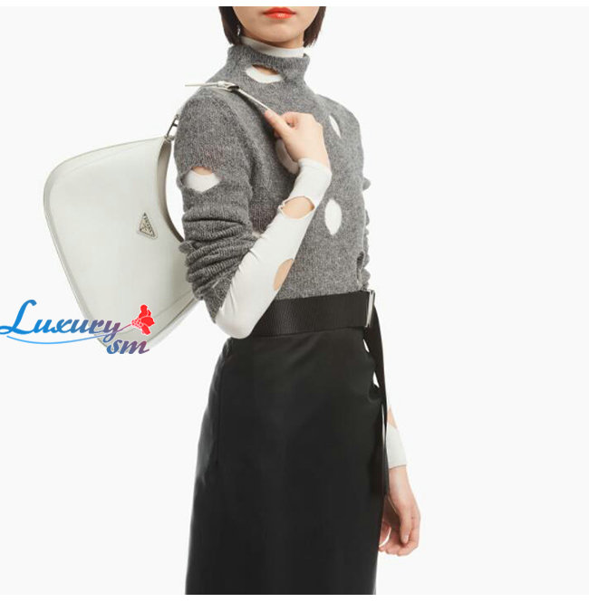 [스페셜오더]PRADA-1BC156 프라다 화이트 클레오 브러시드 가죽 숄더백