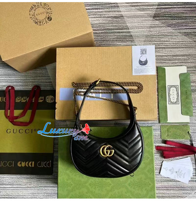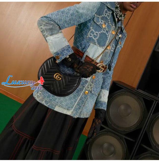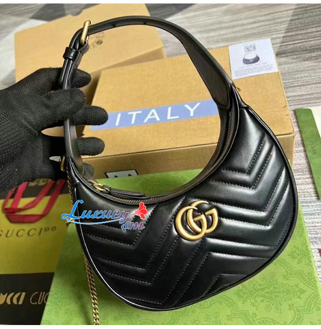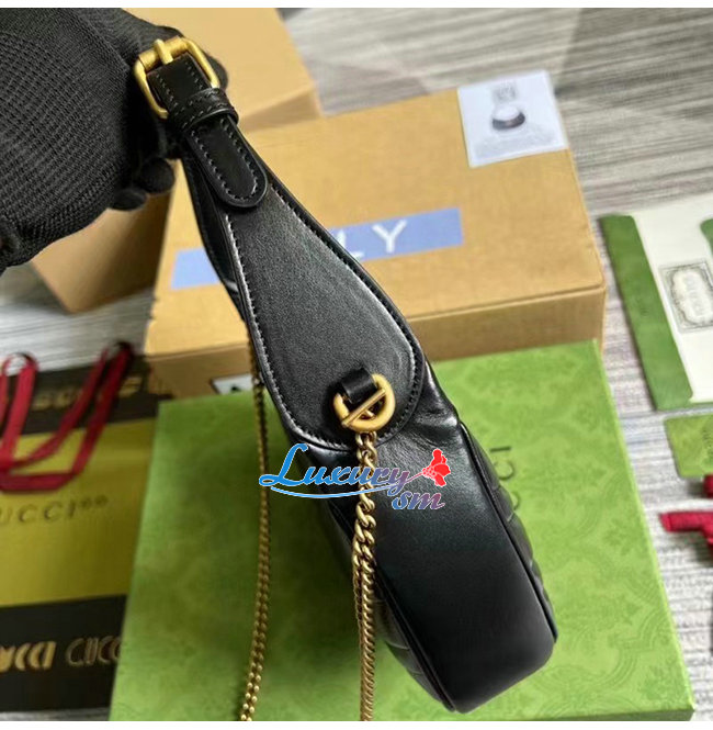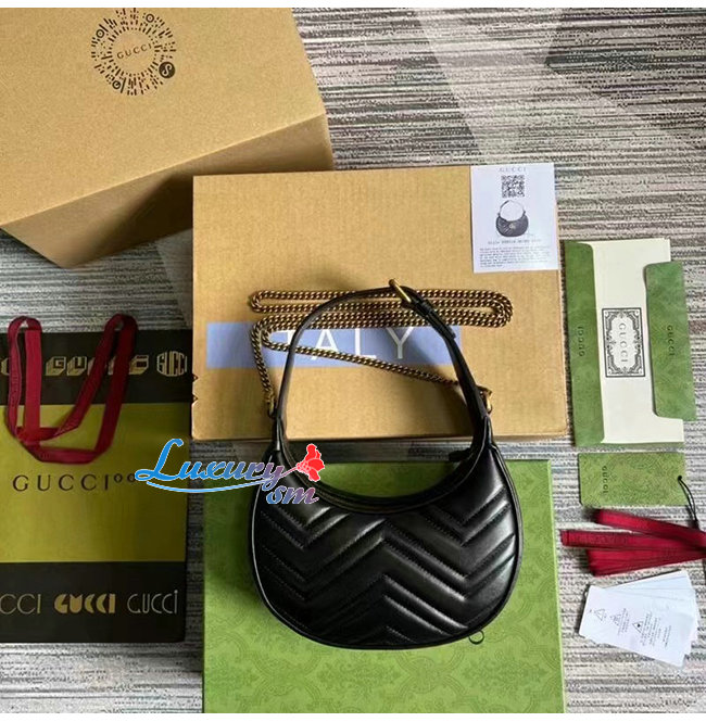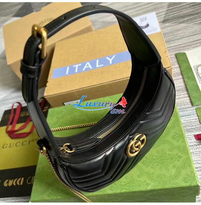[스페셜오더]GUCCI-699514 1000 구찌 블랙 GG 마몽 하프문 쉐입 미니백