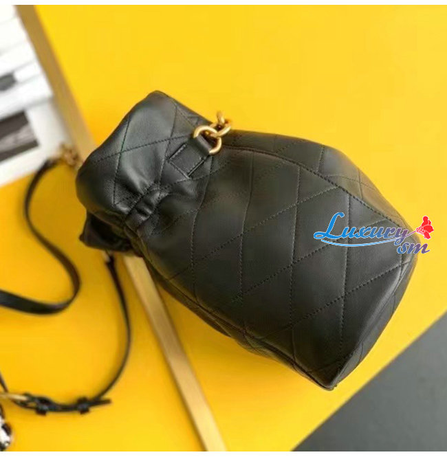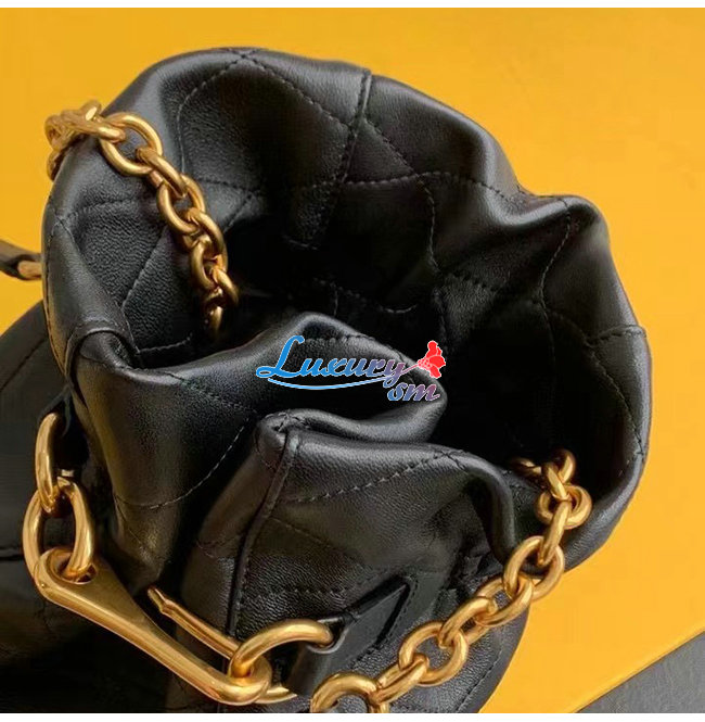 버킷백. 앞면에 조각적인 후크 잠금장치